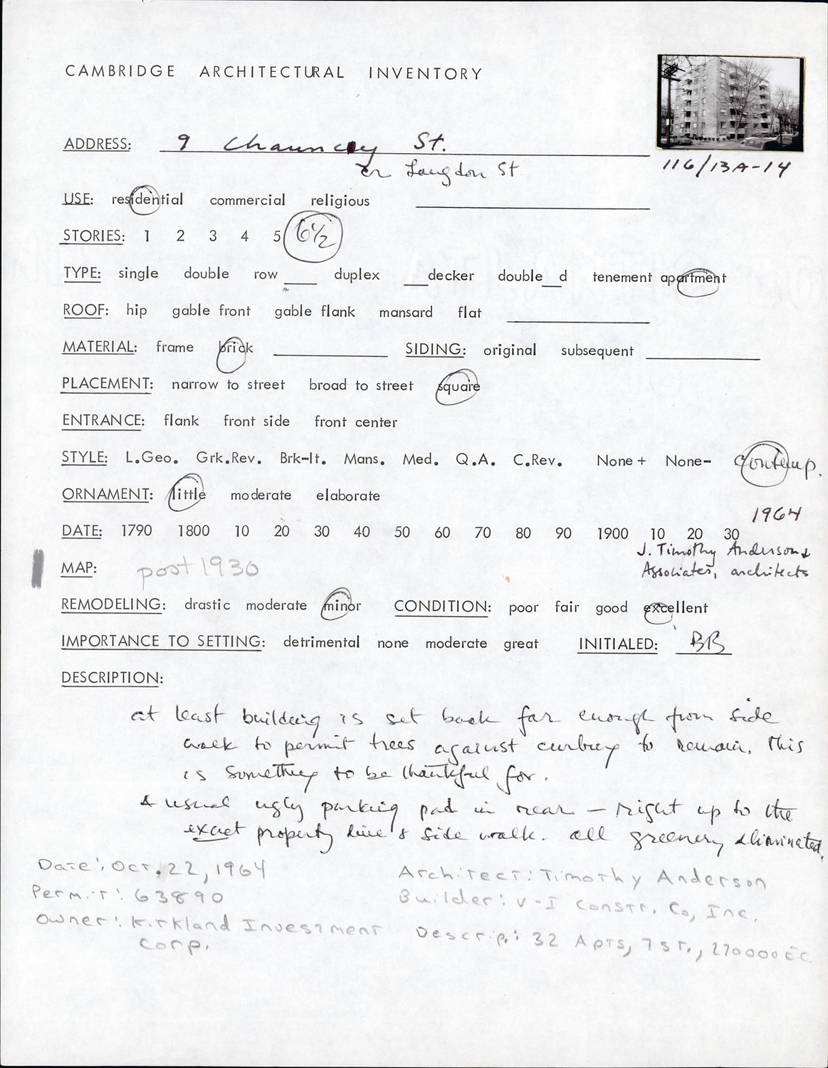 9 Chauncy St - Architectural Inventory Form