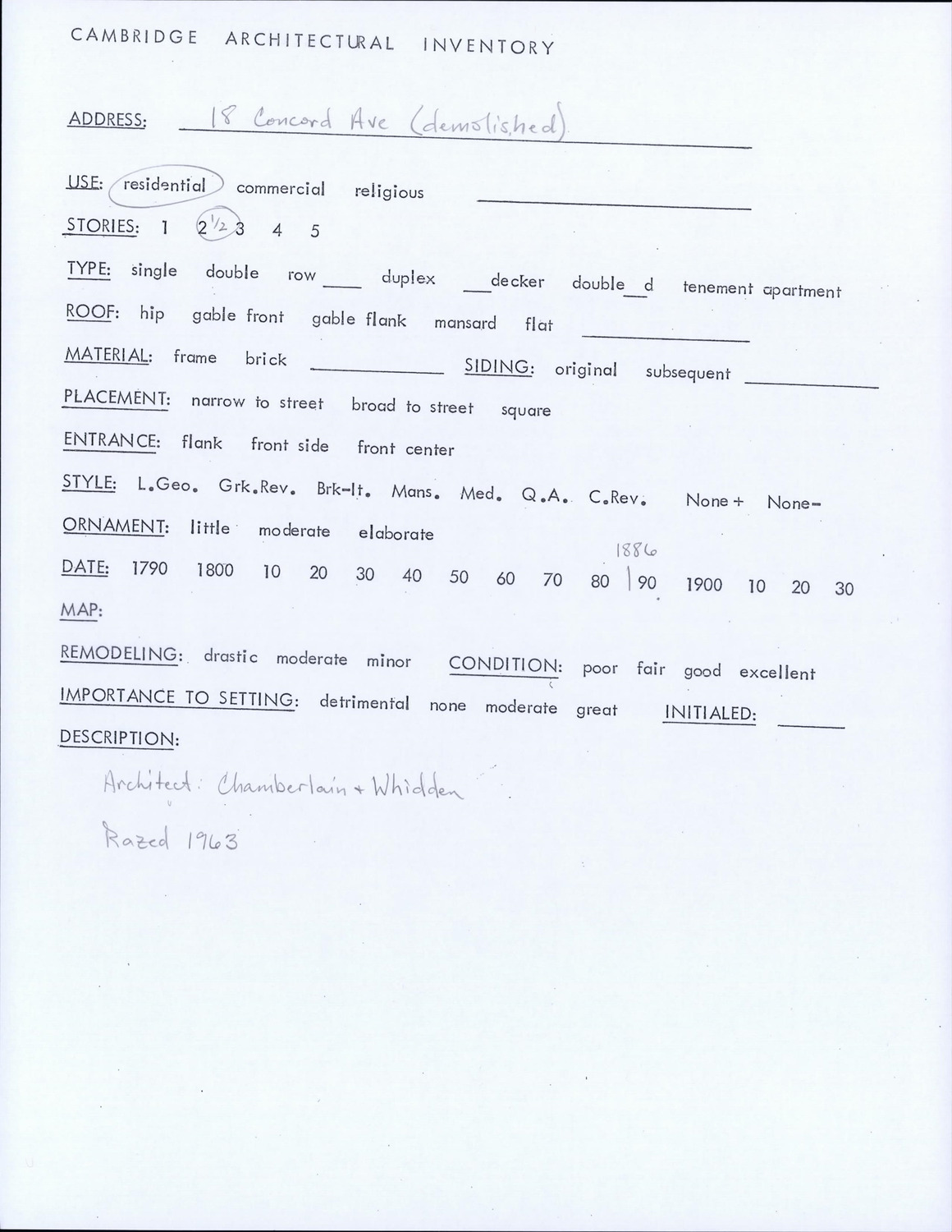 18 Concord Ave - Architectural Inventory Form