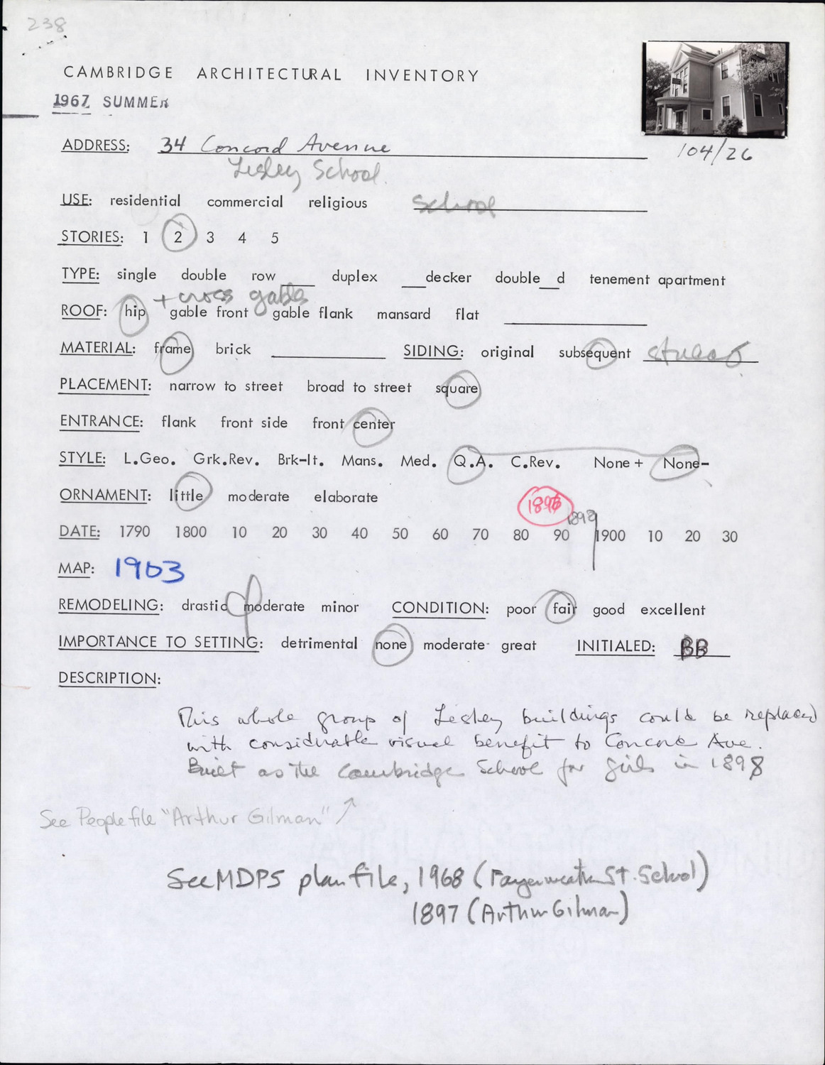- Cambridge Historical Commission, Digital Architectural Survey and History.
