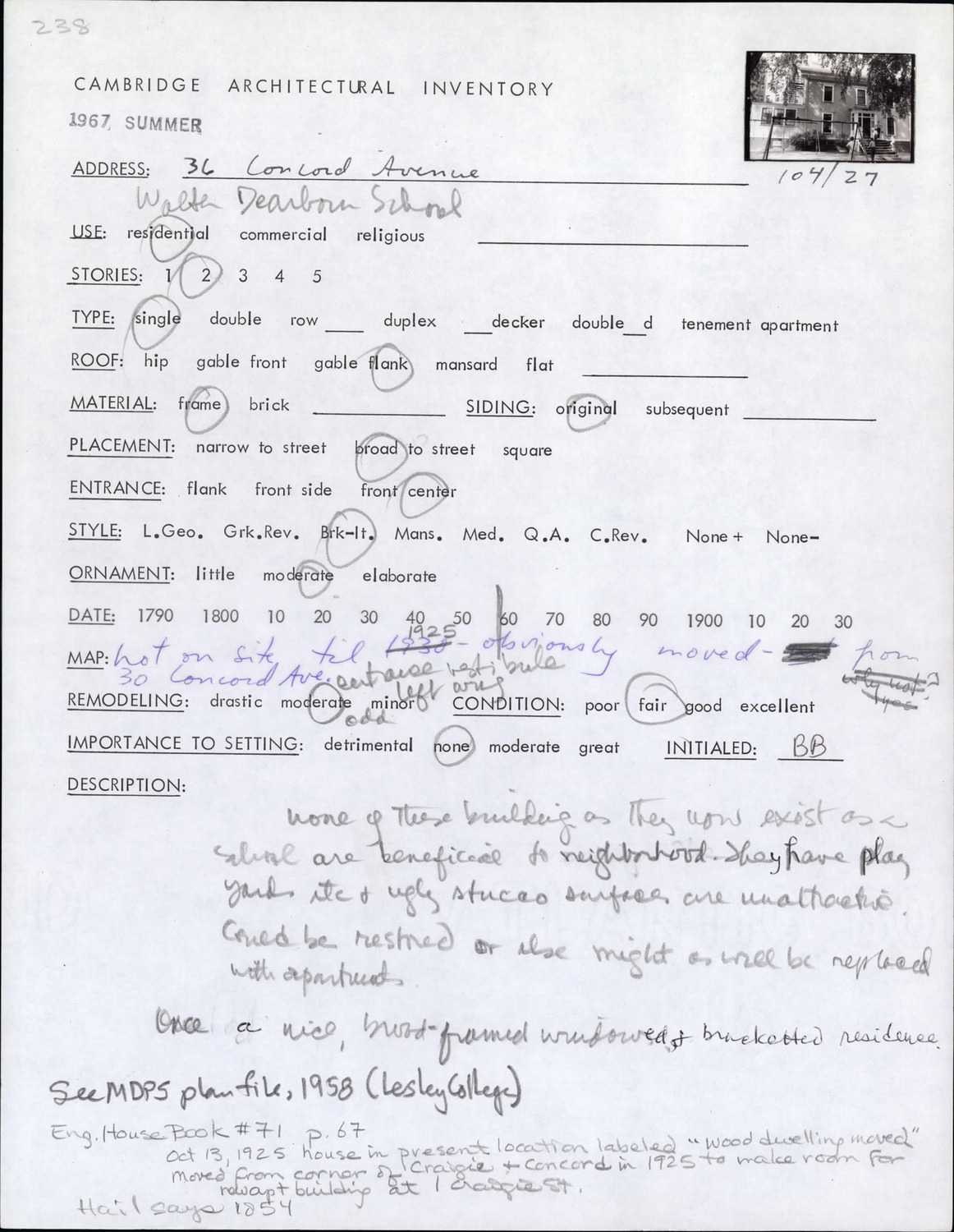 36 Concord Ave - Architectural Inventory Form