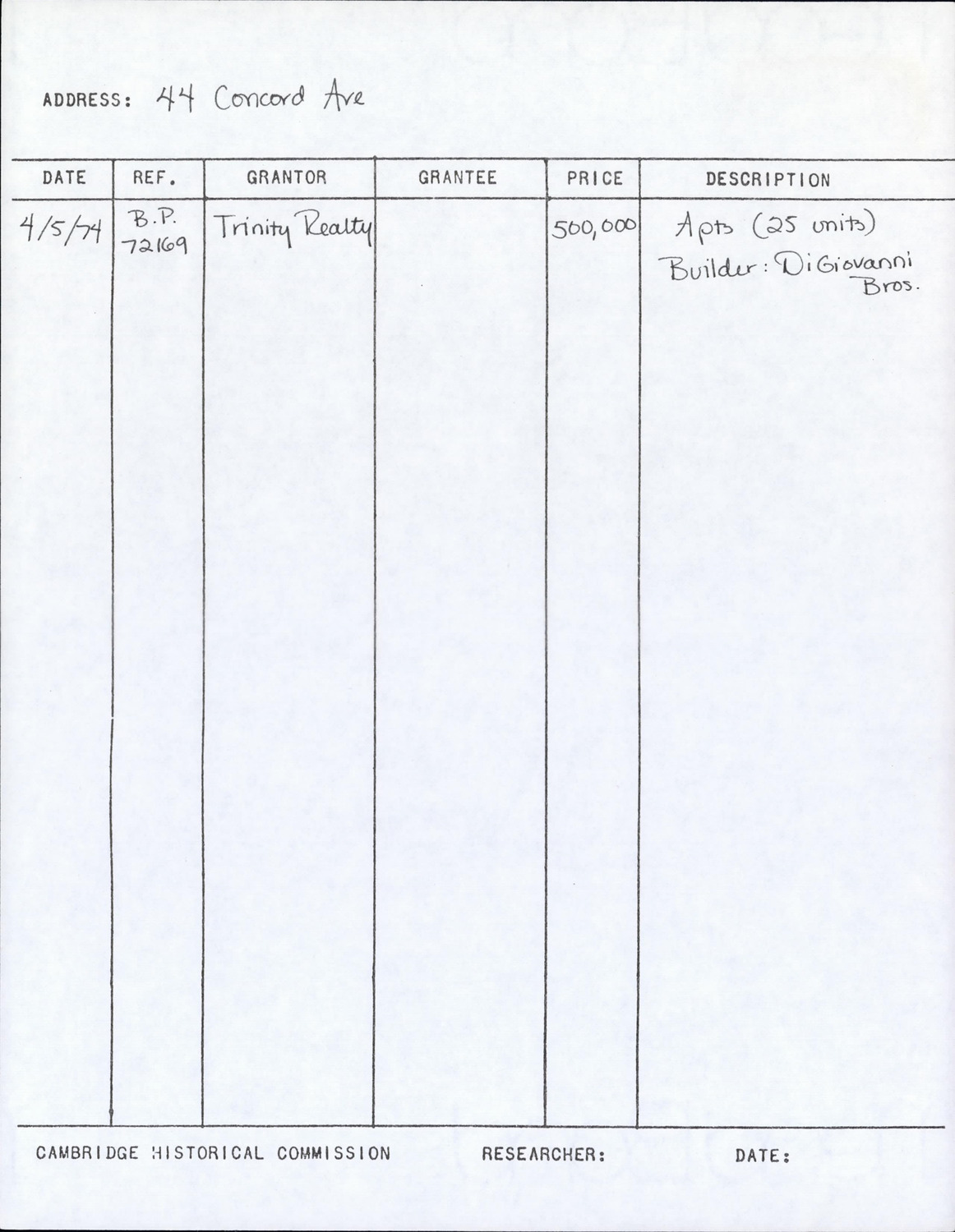 44 Concord Ave - Research Form