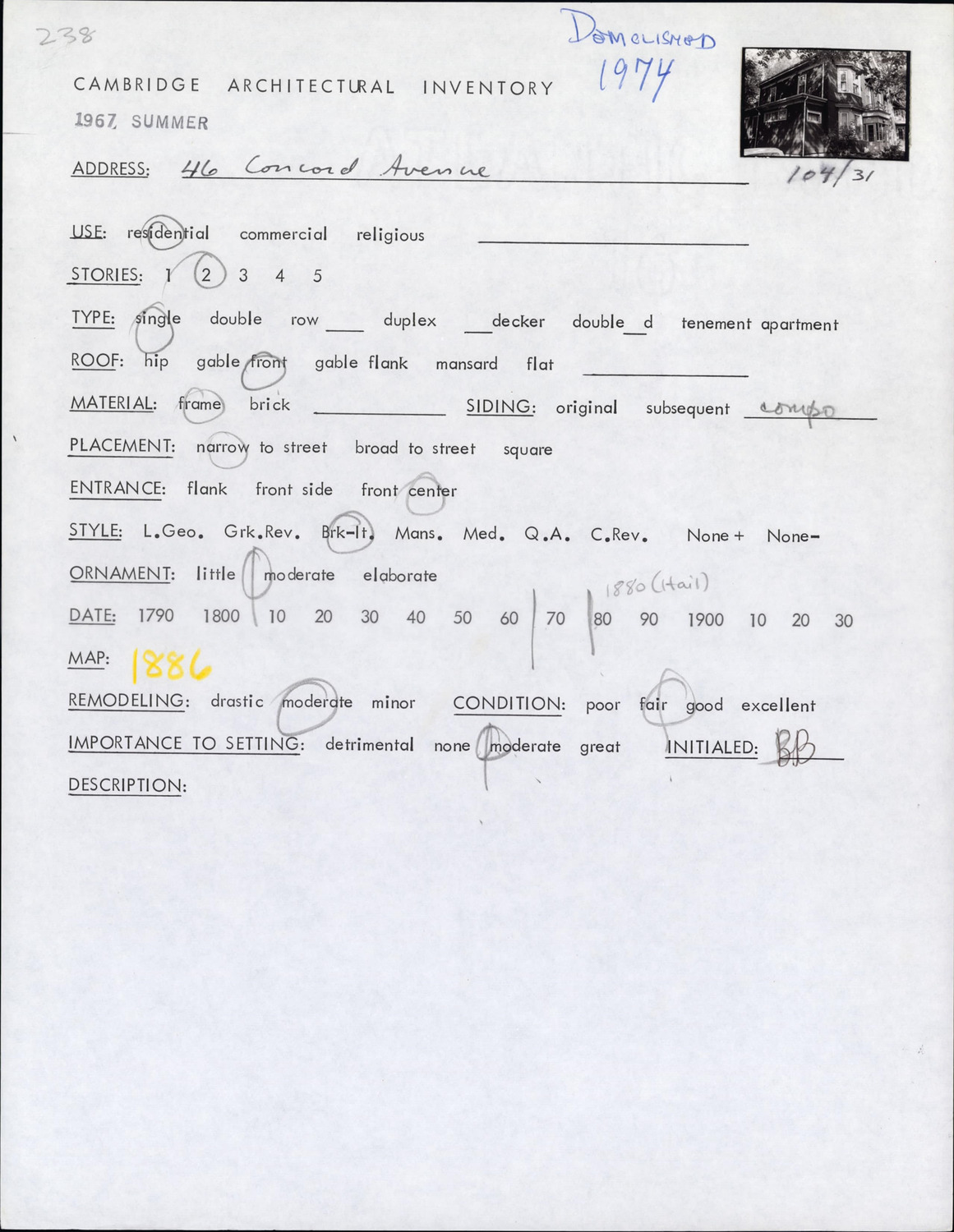 - Cambridge Historical Commission, Digital Architectural Survey and History.
