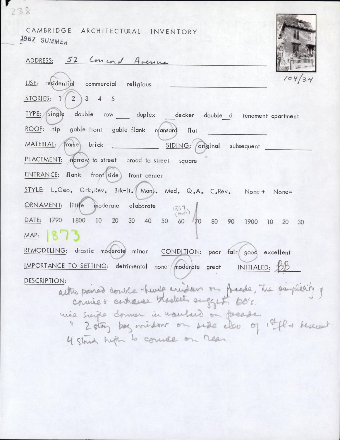 52 Concord Ave - Architectural Inventory Form