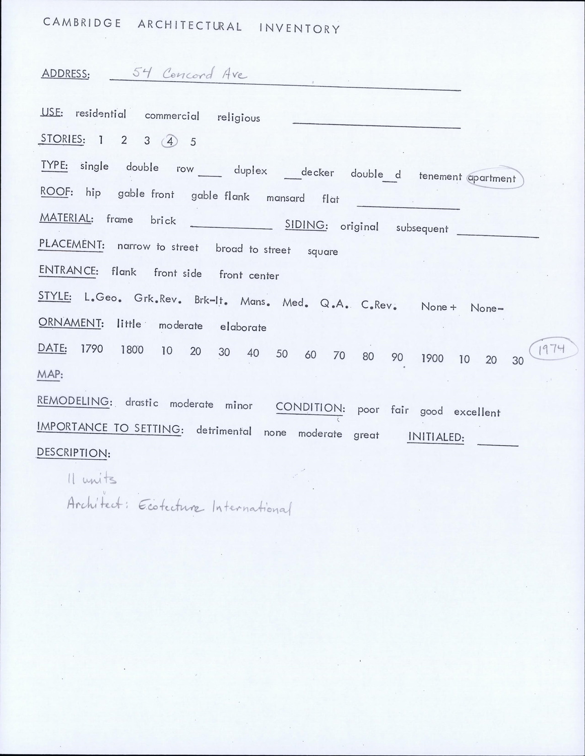 54 Concord Ave - Architectural Inventory Form