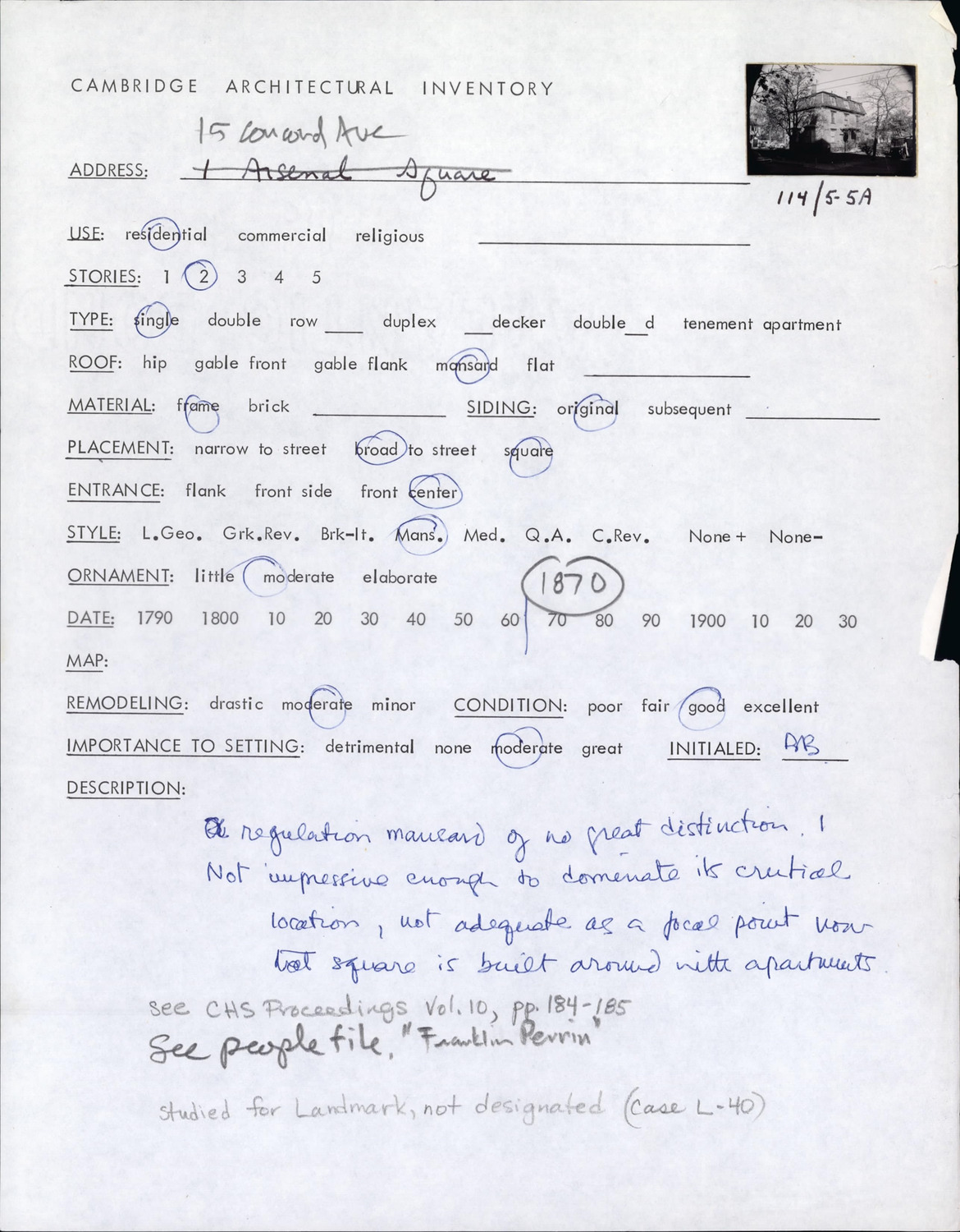 - Cambridge Historical Commission, Digital Architectural Survey and History.
