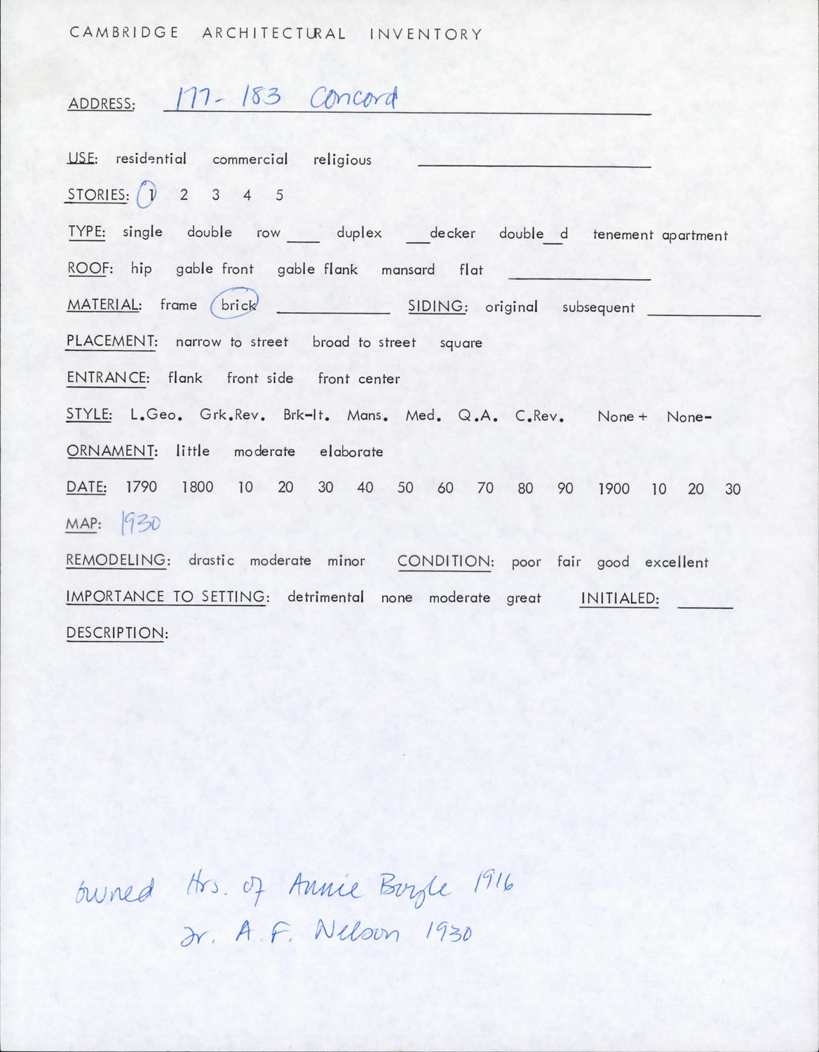 177-183 Concord Ave - Architectural Inventory Form