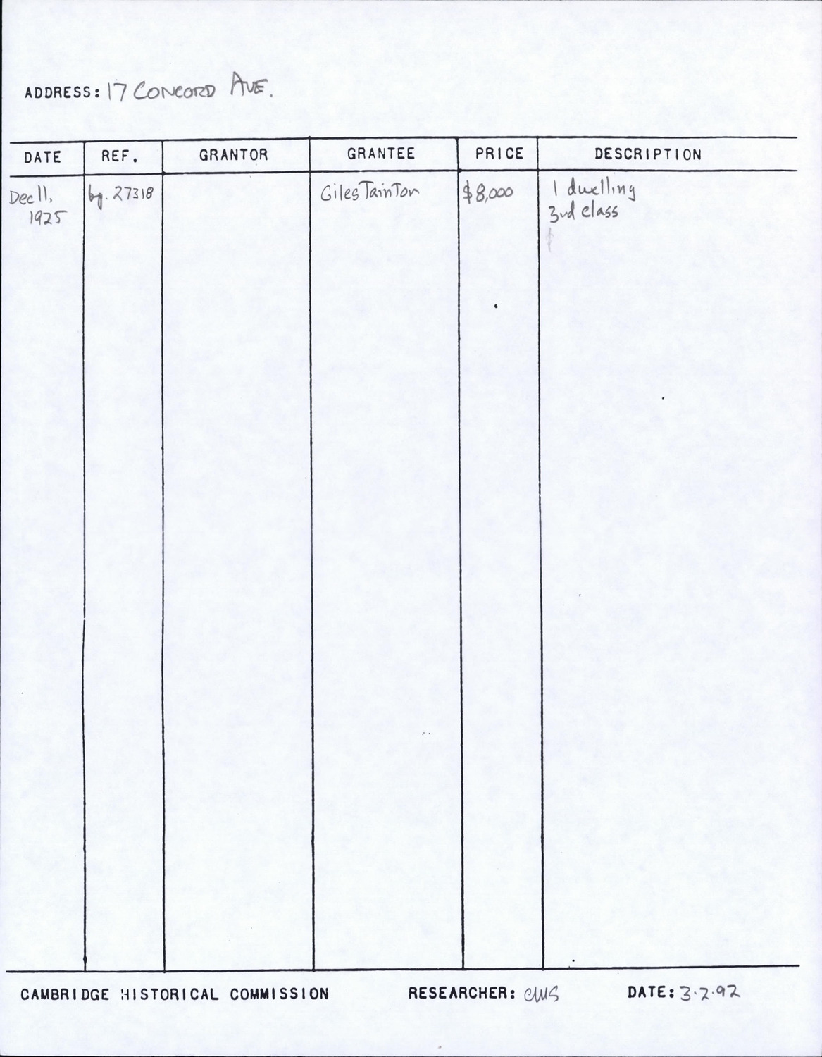 17 Concord Ave - Research Form