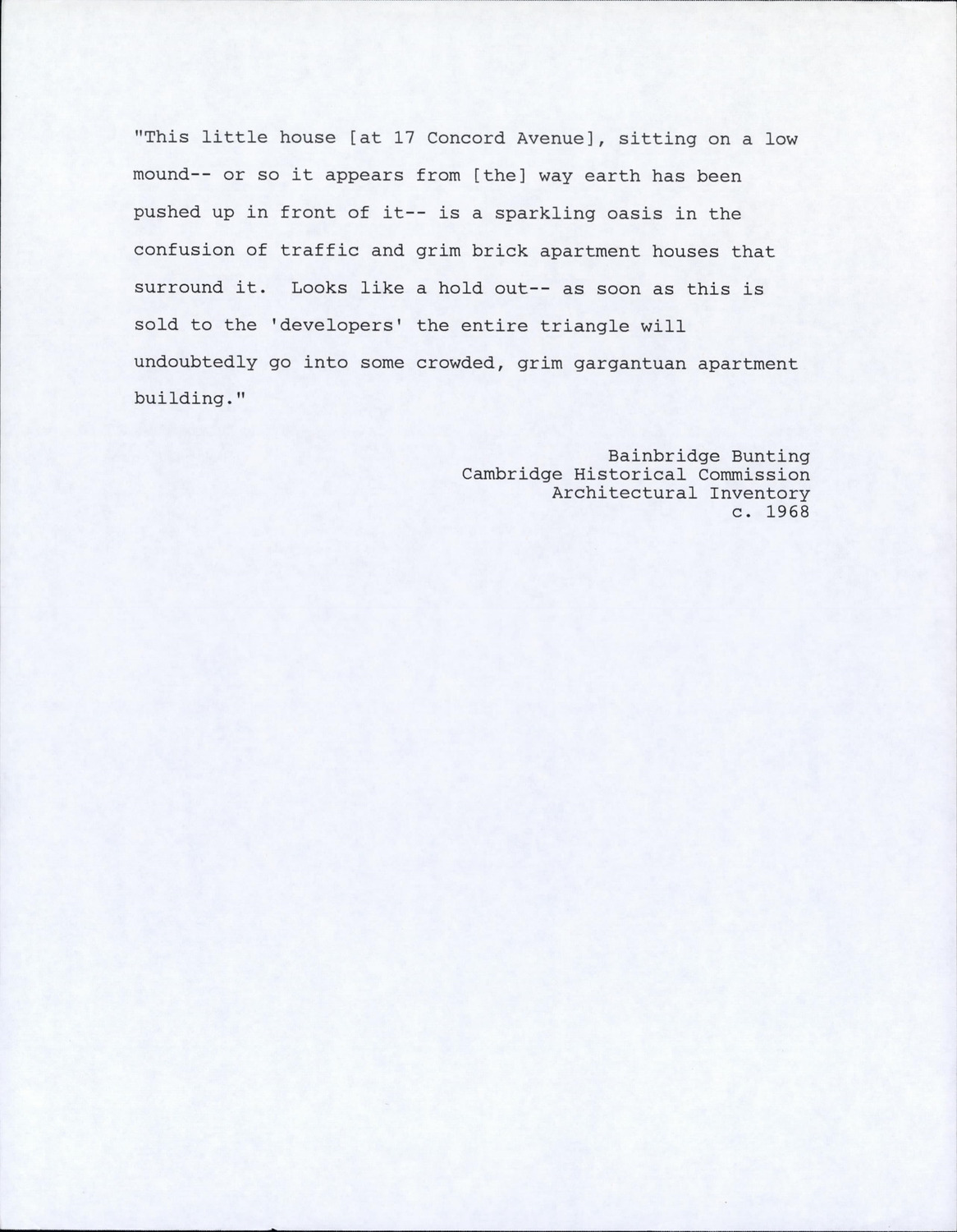 - Cambridge Historical Commission, Digital Architectural Survey and History.