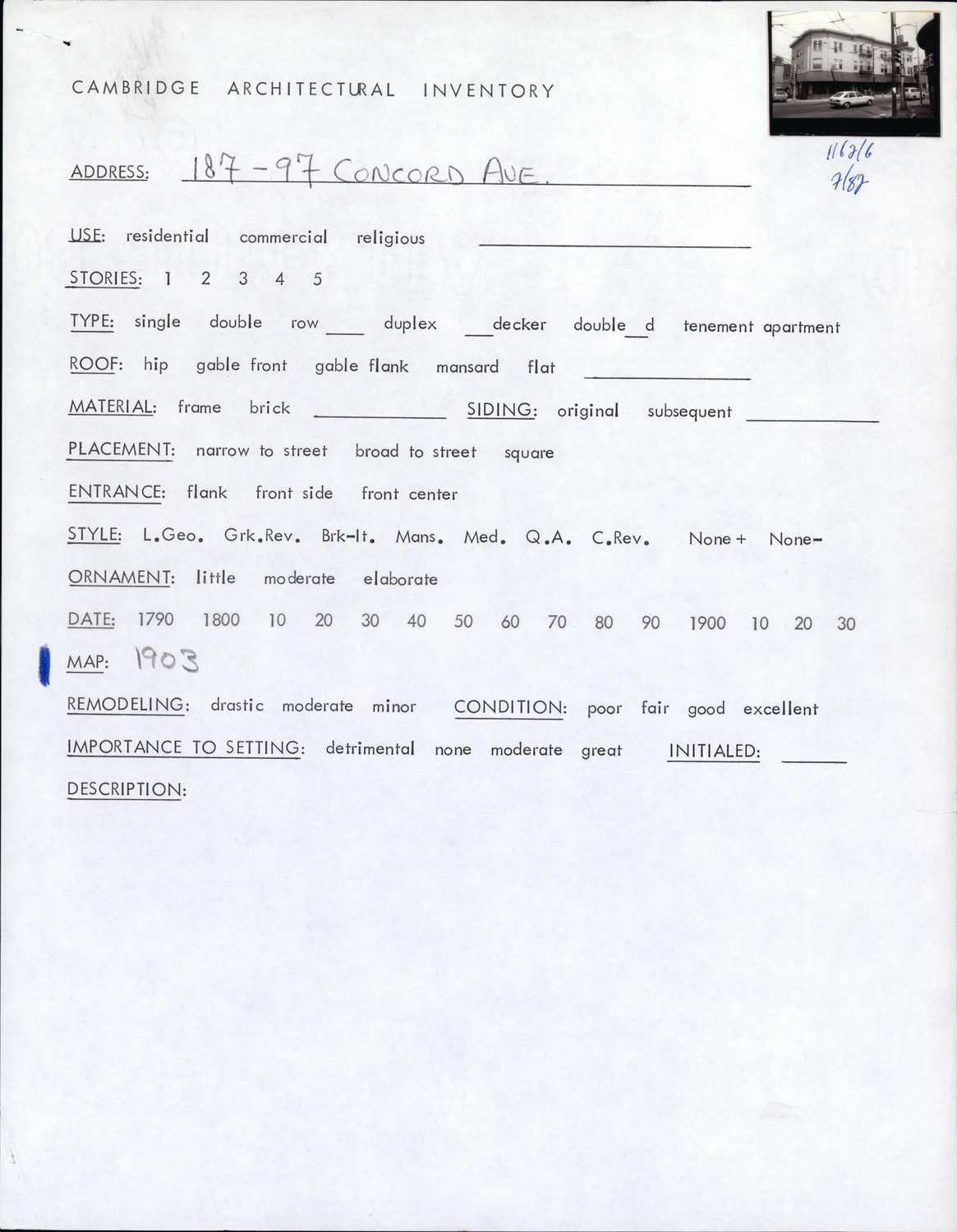 187-197 Concord Ave - Architectural Inventory Form