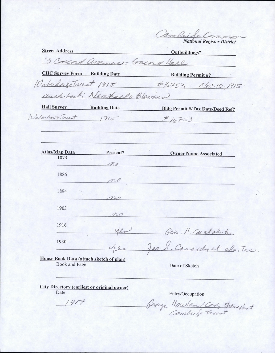 - Cambridge Historical Commission, Digital Architectural Survey and History.