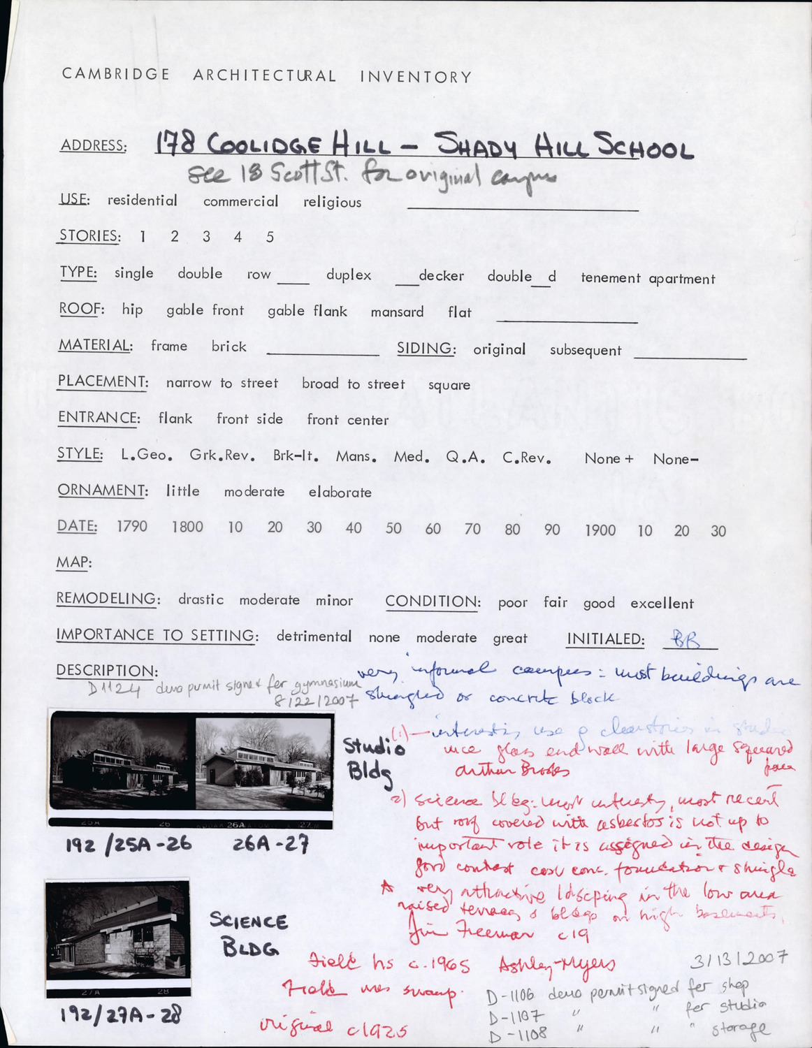 178 Coolidge Hill - Shady Hill School - Architectural Inventory Form