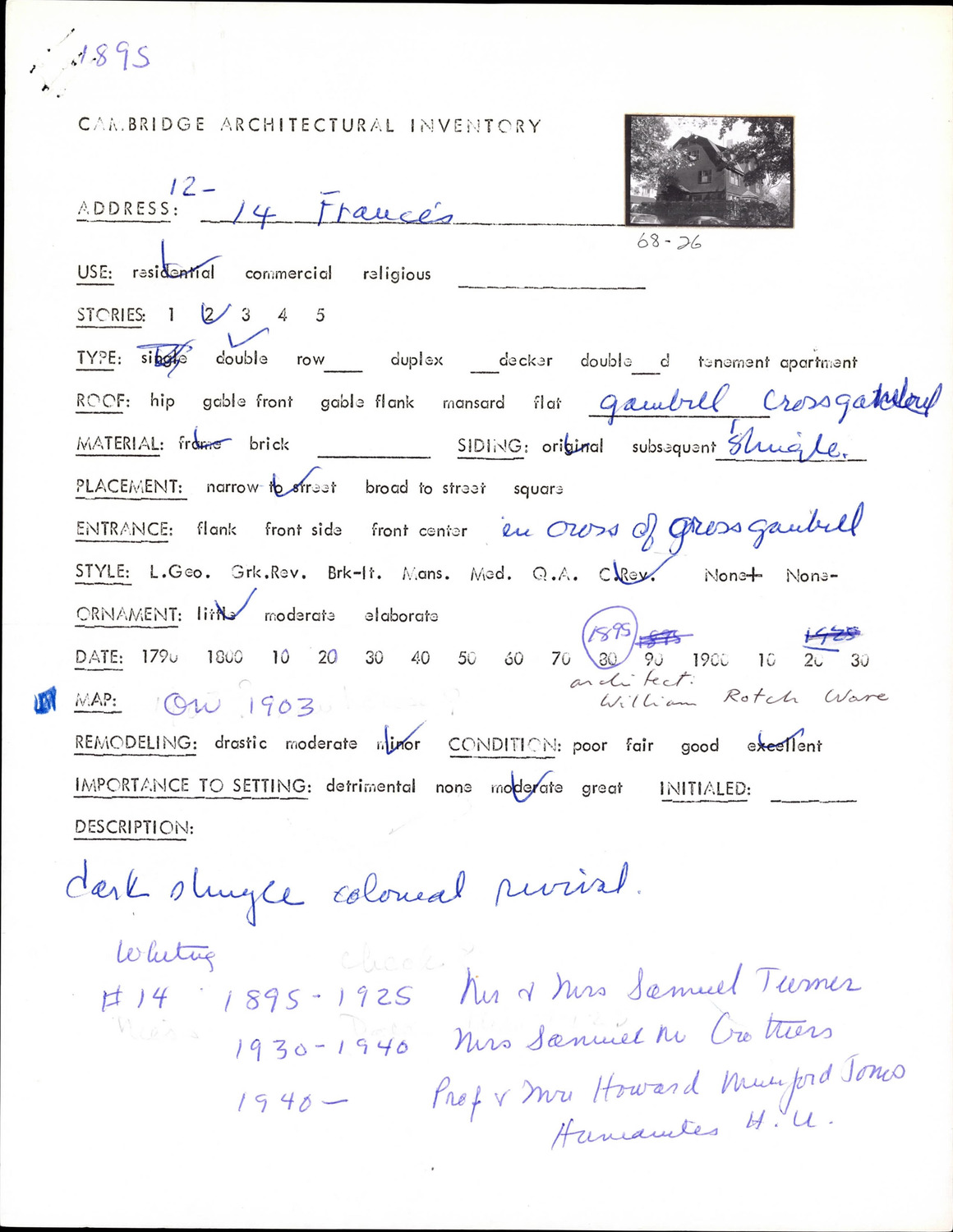 - Cambridge Historical Commission, Digital Architectural Survey and History.