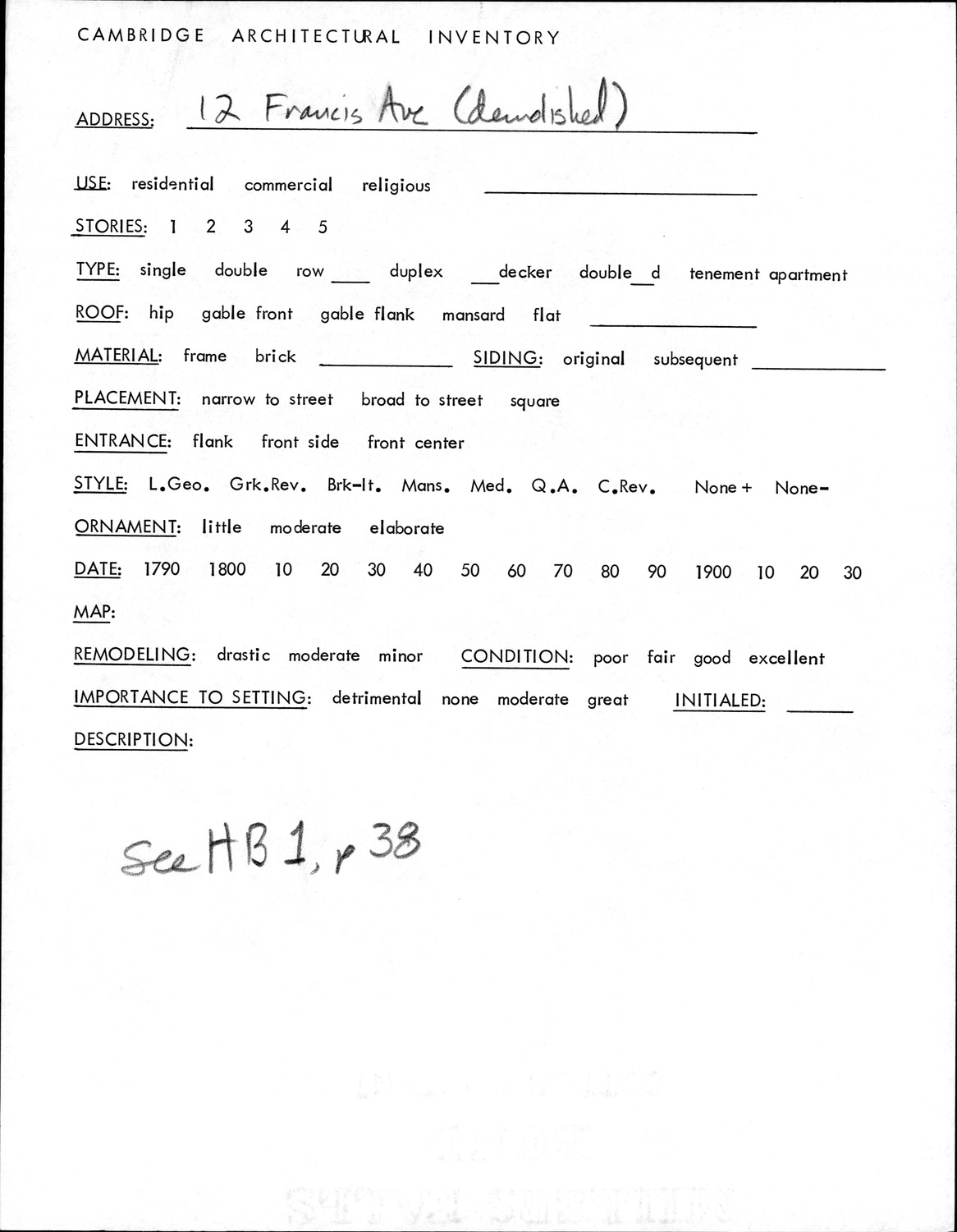 - Cambridge Historical Commission, Digital Architectural Survey and History.