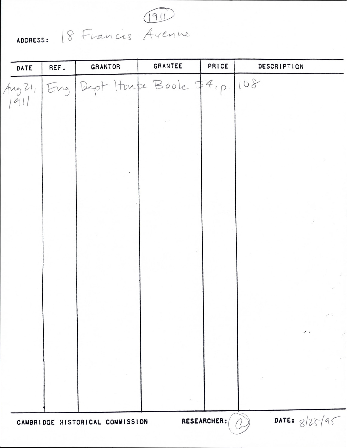 18 Francis Ave - Research Form