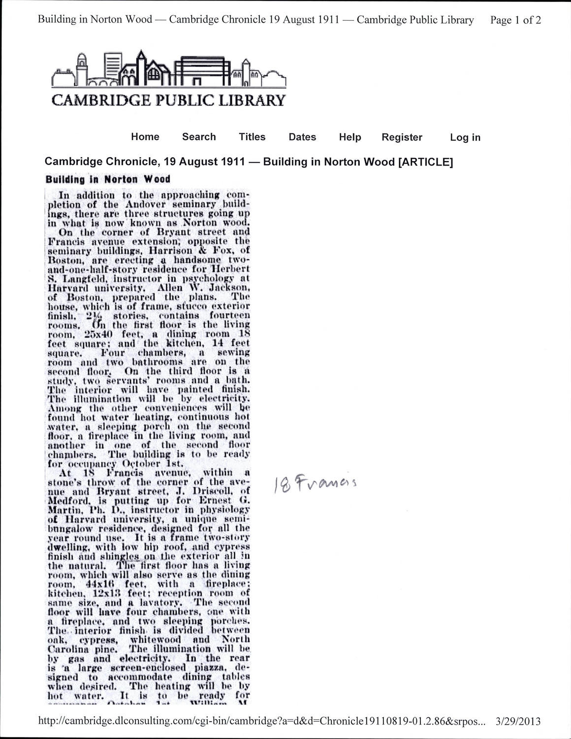 - Cambridge Historical Commission, Digital Architectural Survey and History.