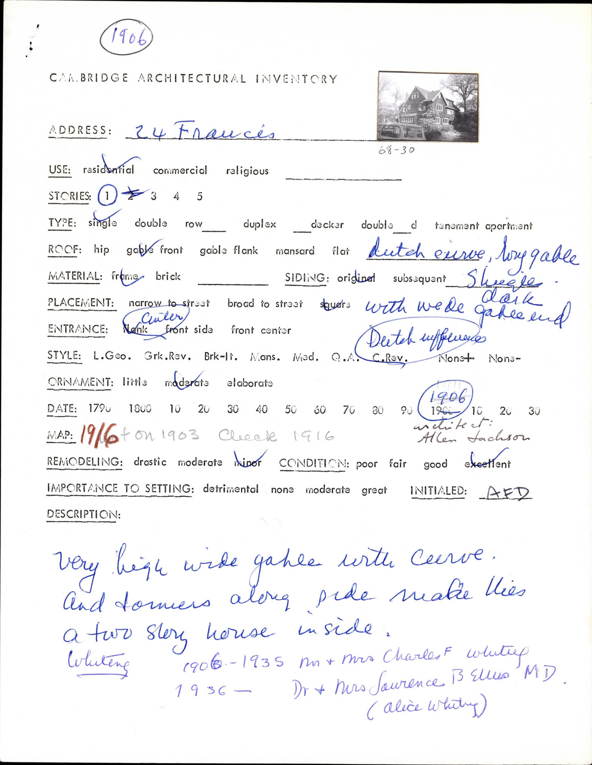 24 Francis Ave - Architectural Inventory Form