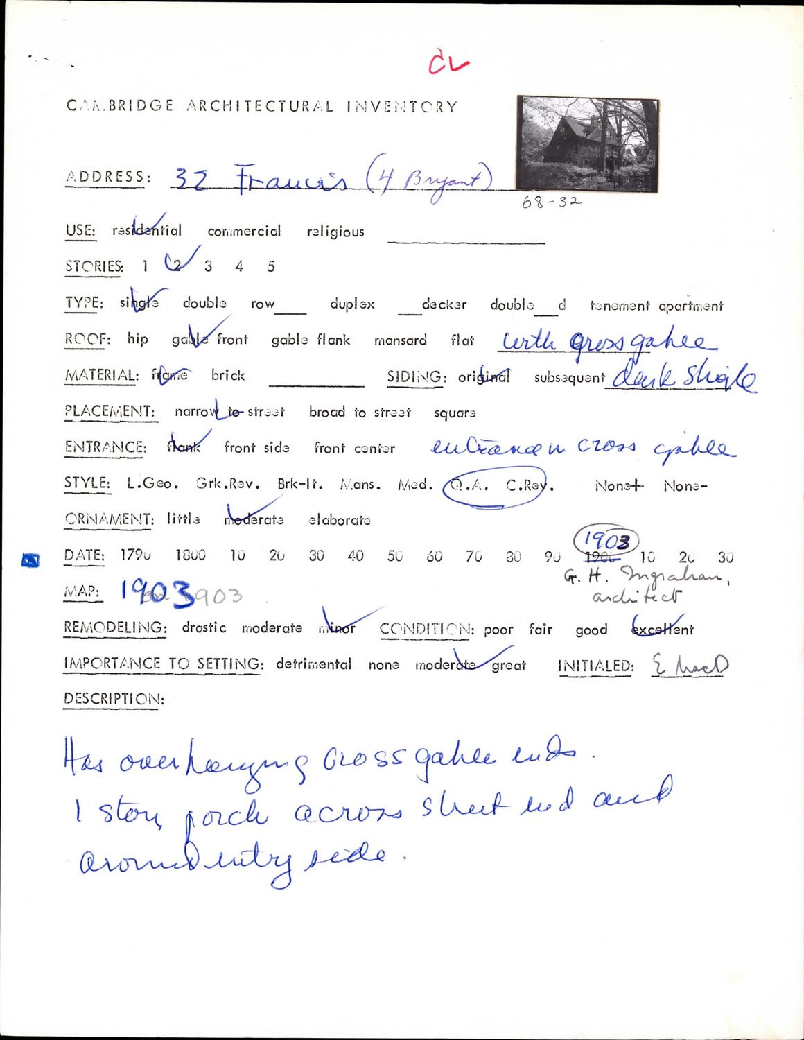 32 Francis Ave - Architectural Inventory Form