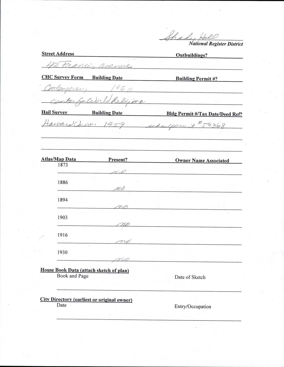 42 Francis Ave - Research Form