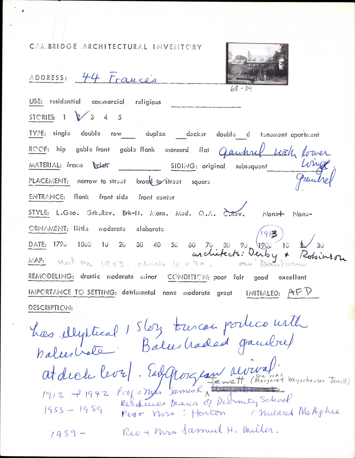 44 Francis Ave - Architectural Inventory Form