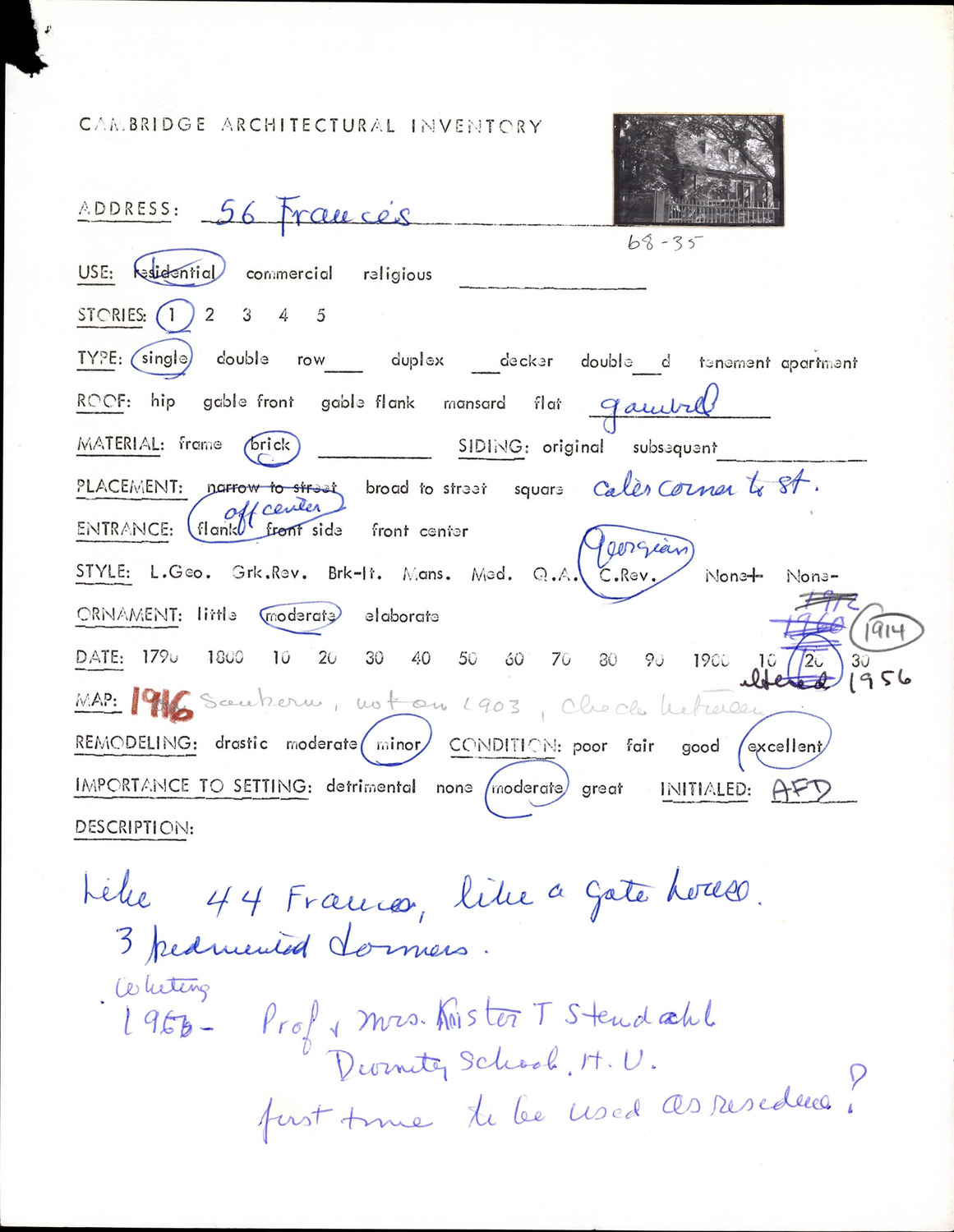 56 Francis Ave - Architectural Inventory Form