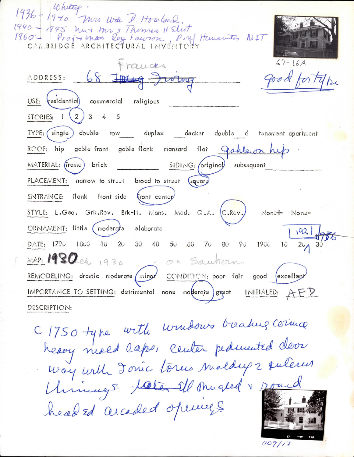 68 Francis Ave - Architectural Inventory Form