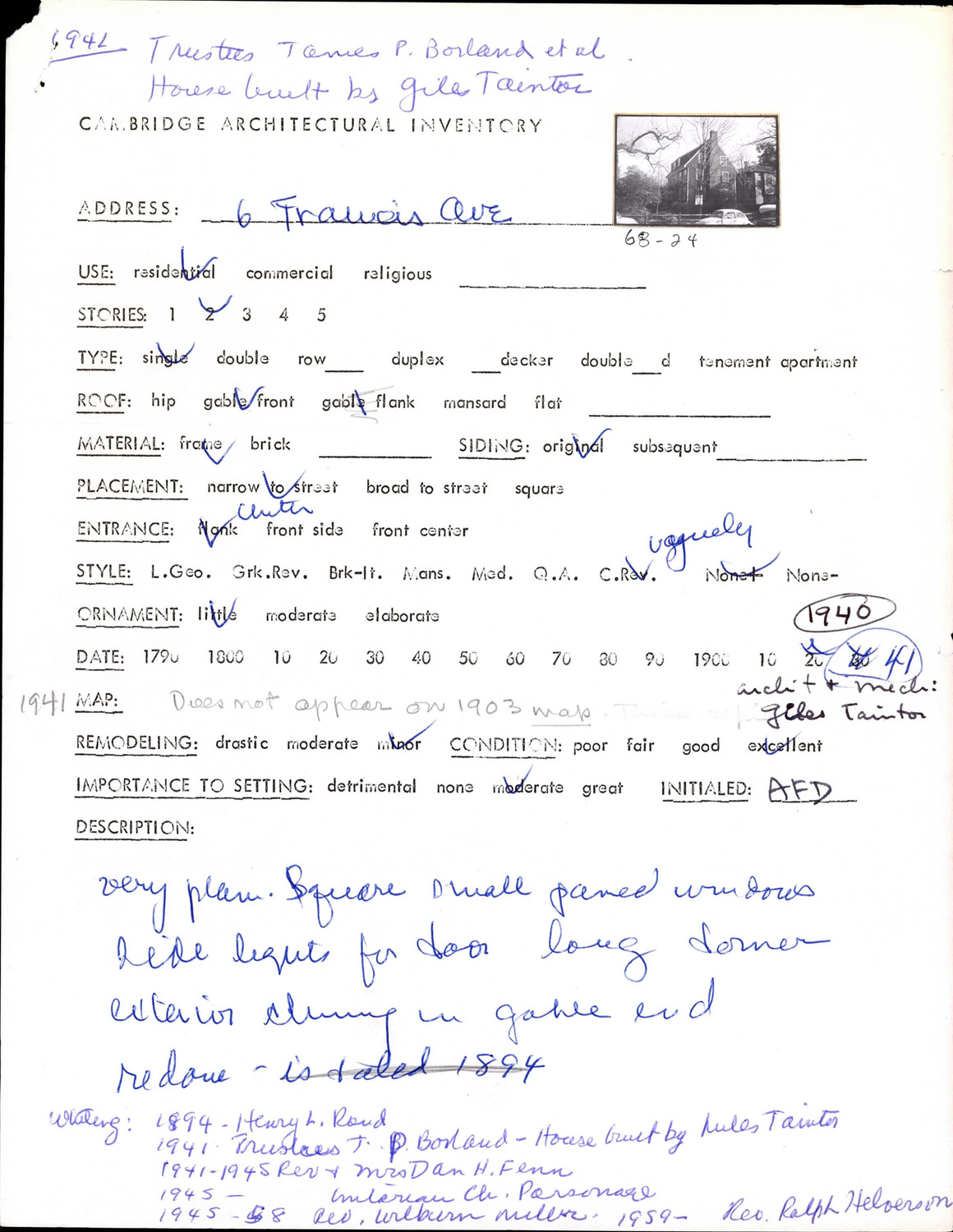 - Cambridge Historical Commission, Digital Architectural Survey and History.