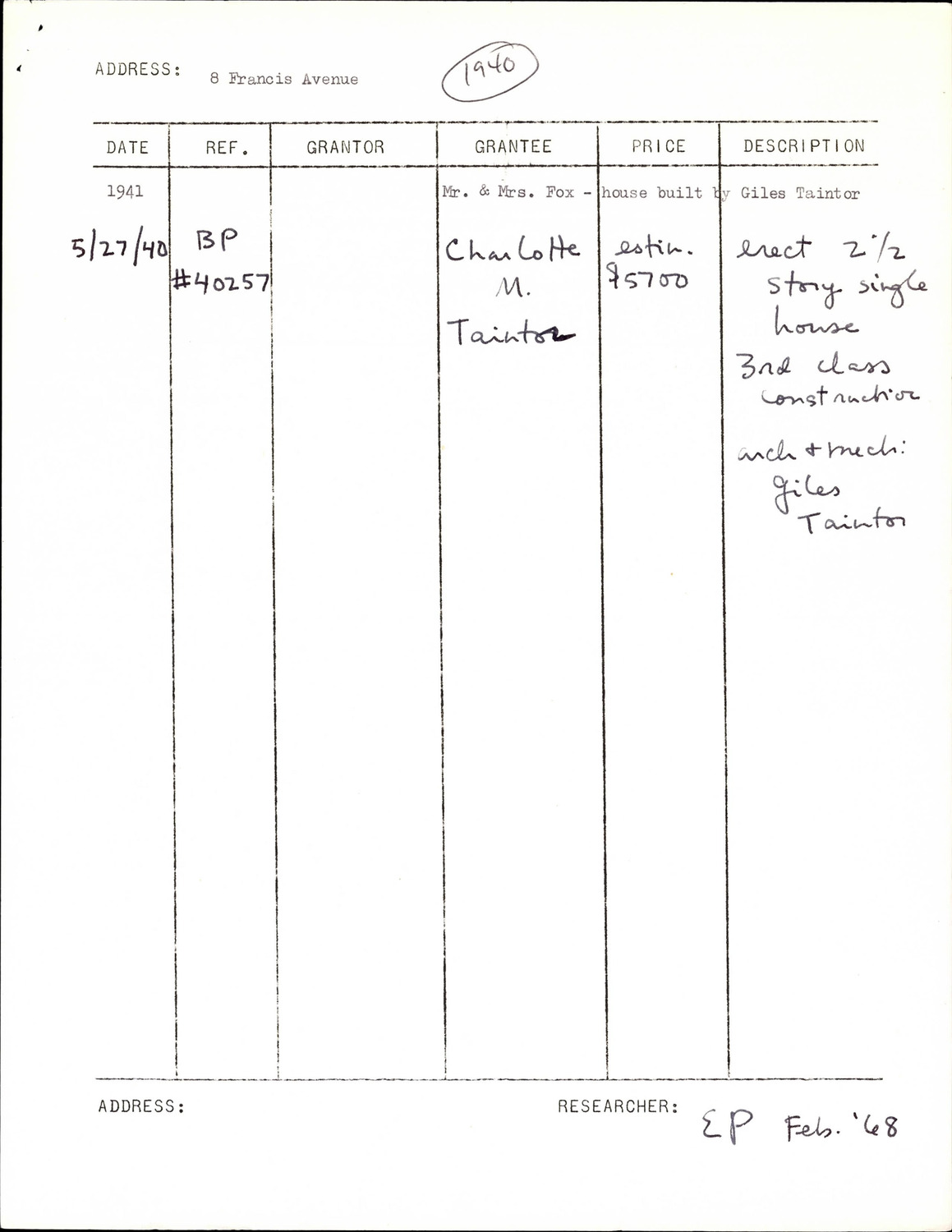 8 Francis Ave - Research Form
