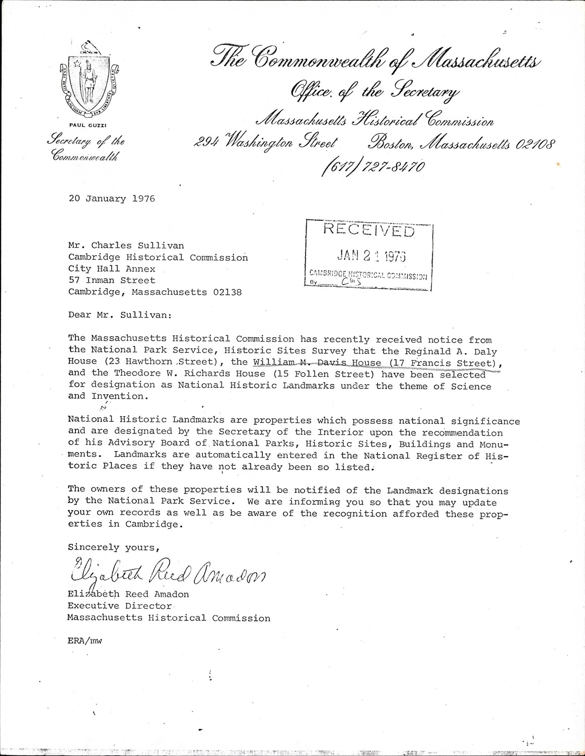 - Cambridge Historical Commission, Digital Architectural Survey and History.