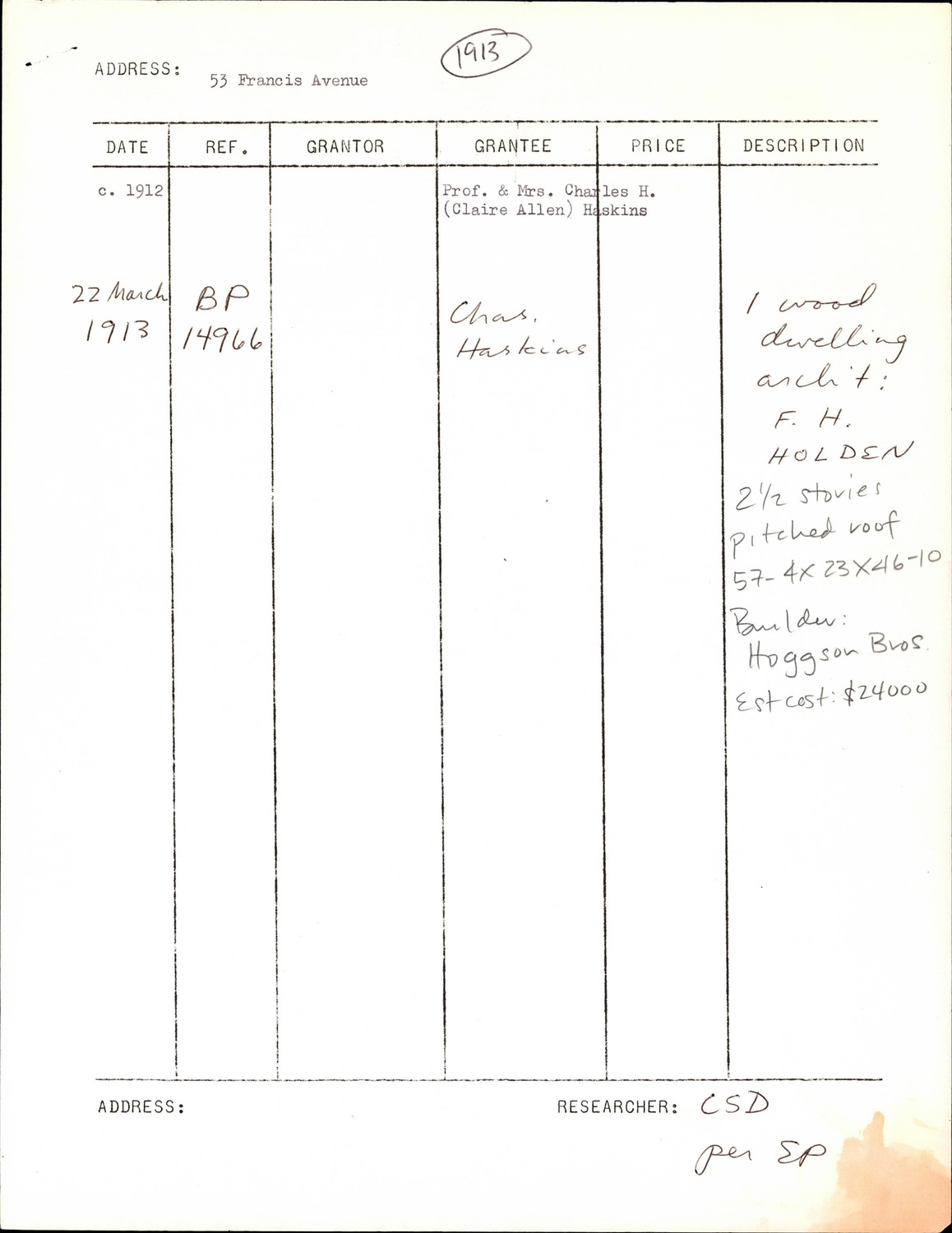 53 Francis Ave - Research Form
