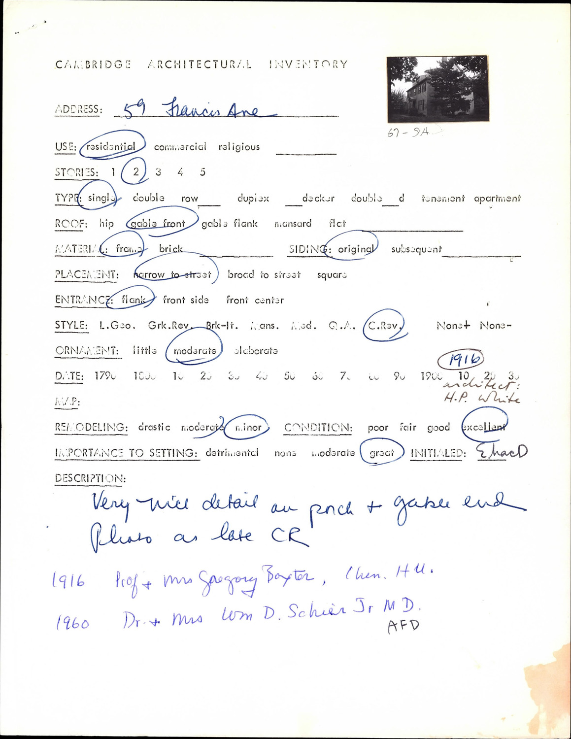 59 Francis Ave - Architectural Inventory Form