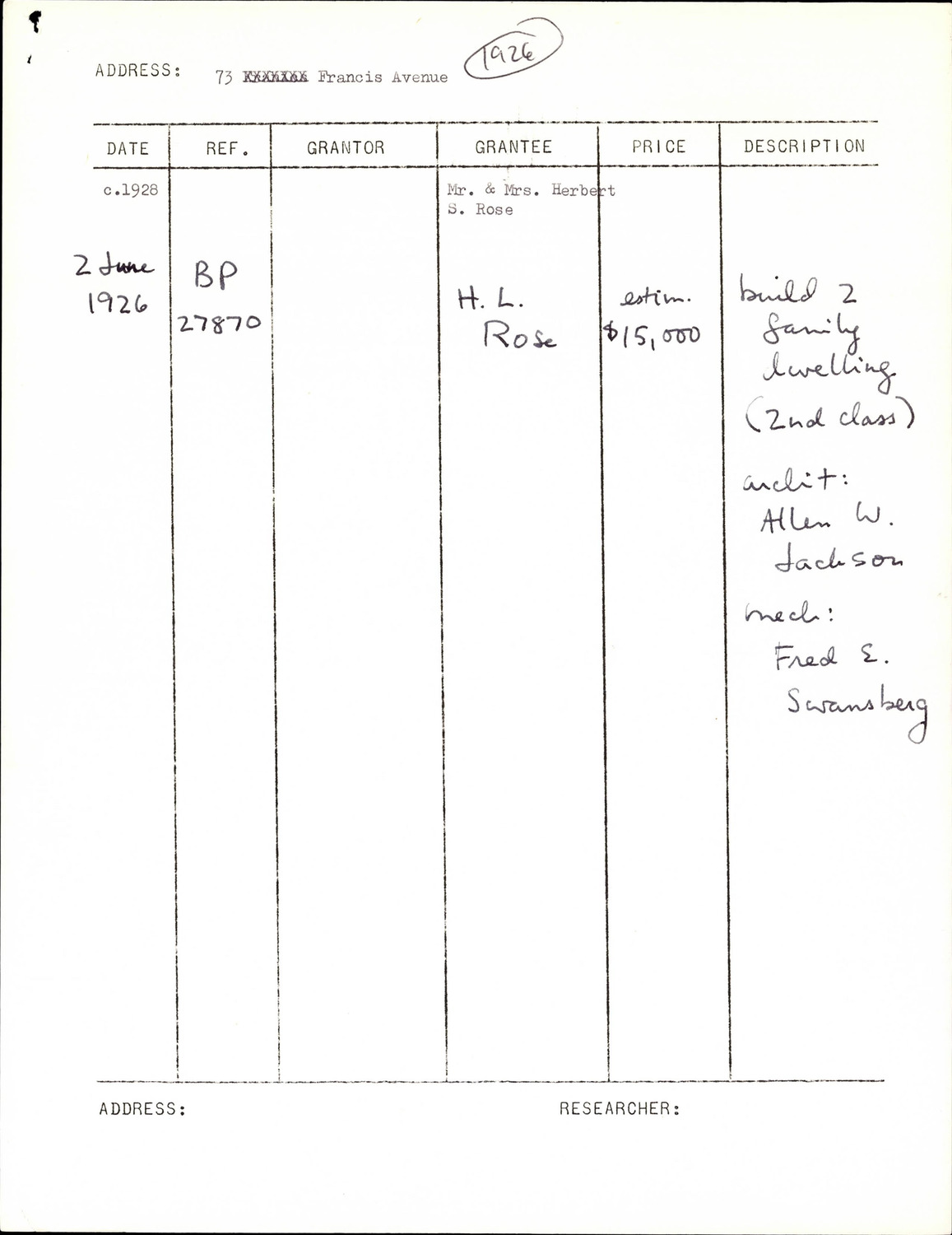 73 Francis Ave - Research Form