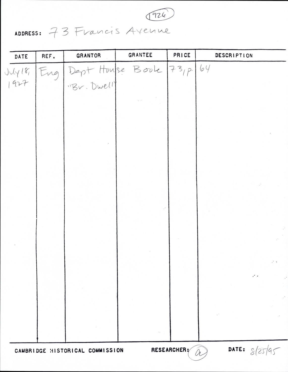 73 Francis Ave - Research Form