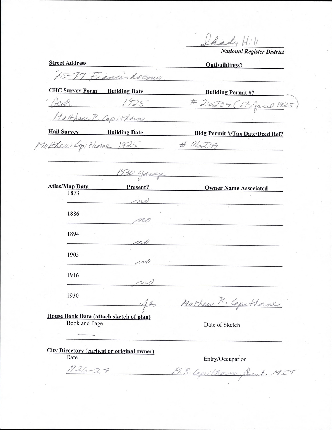 75-77 Francis Ave - Research Form