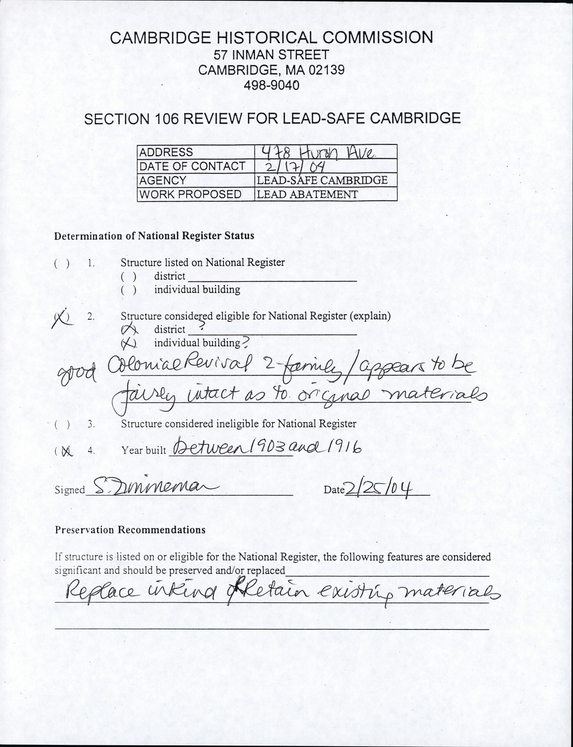 478 Huron Ave - Supplemental Material