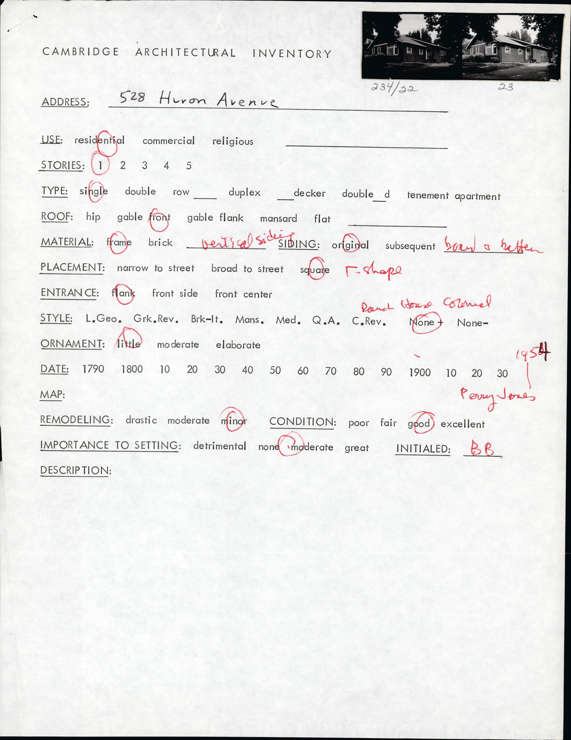 528 Huron Ave - Architectural Inventory Form