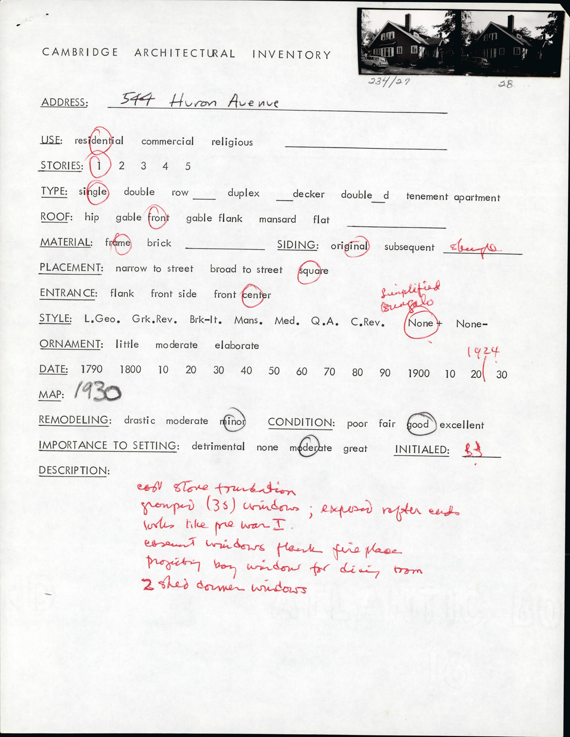544 Huron Ave - Architectural Inventory Form