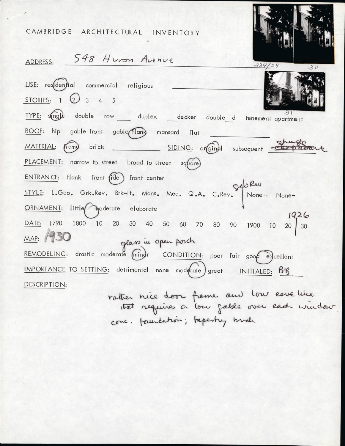 - Cambridge Historical Commission, Digital Architectural Survey and History.