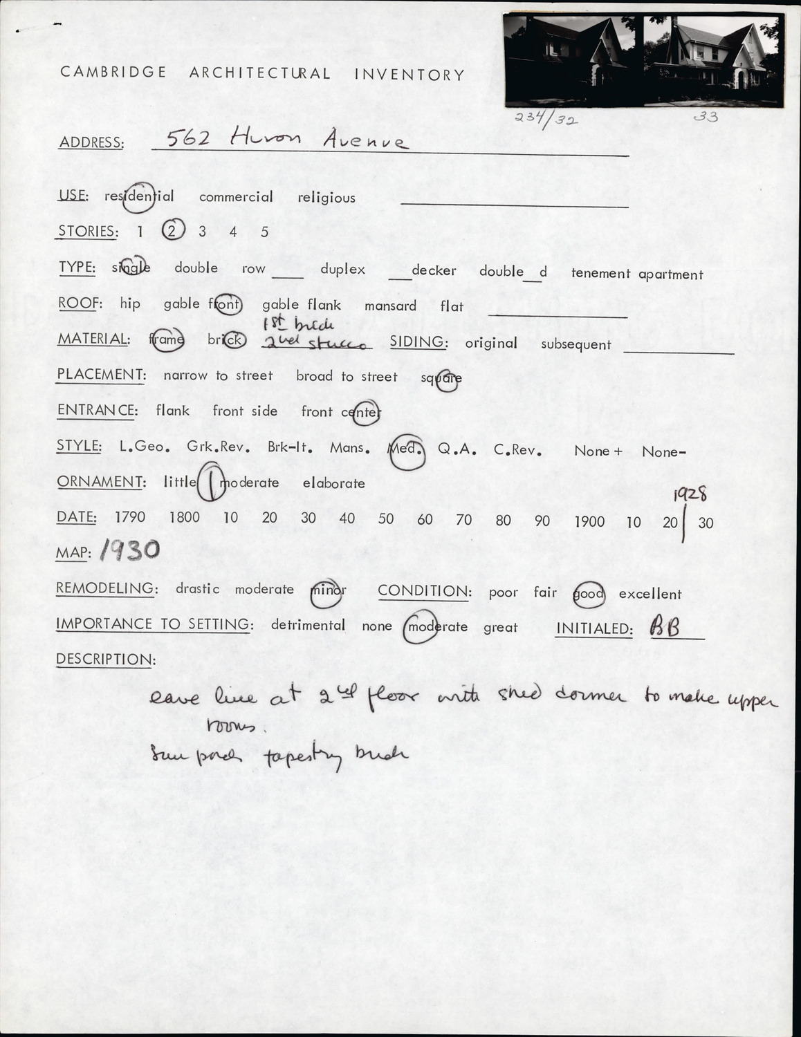 562 Huron Ave - Architectural Inventory Form
