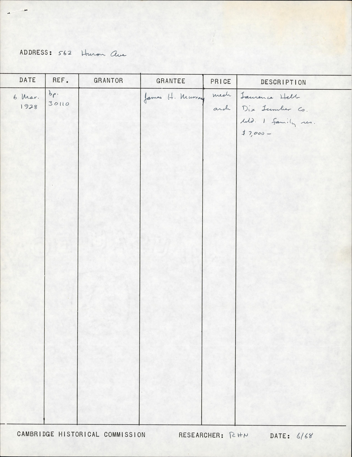 562 Huron Ave - Research Form