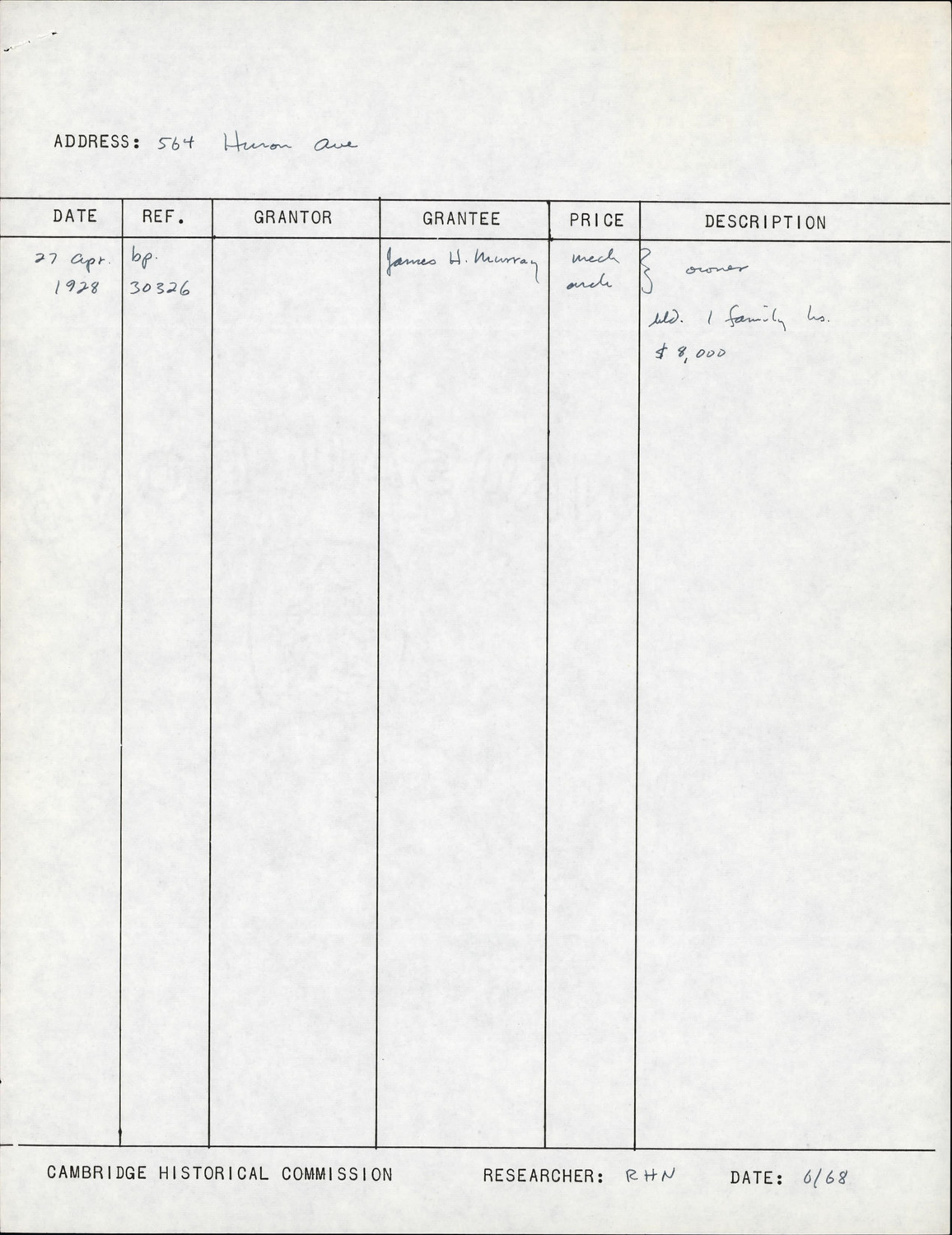 564 Huron Ave - Research Form