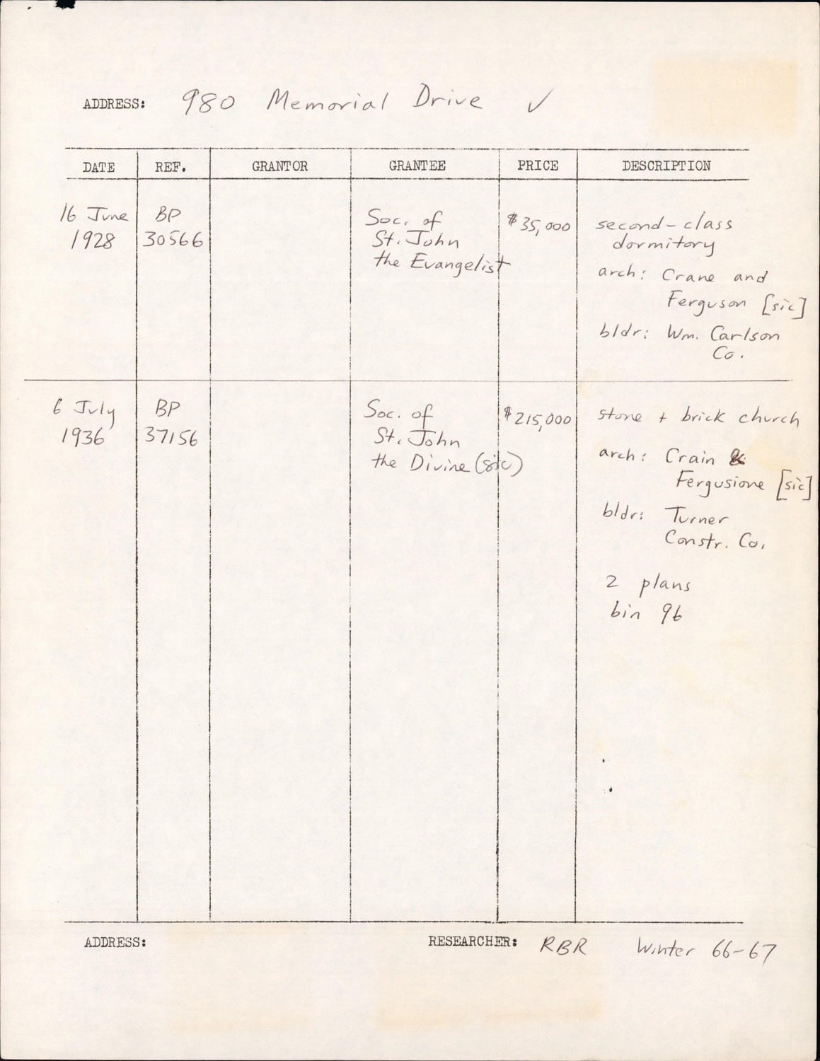 980 Memorial Dr - Conventual Church and Monastery Of St John - Research Form