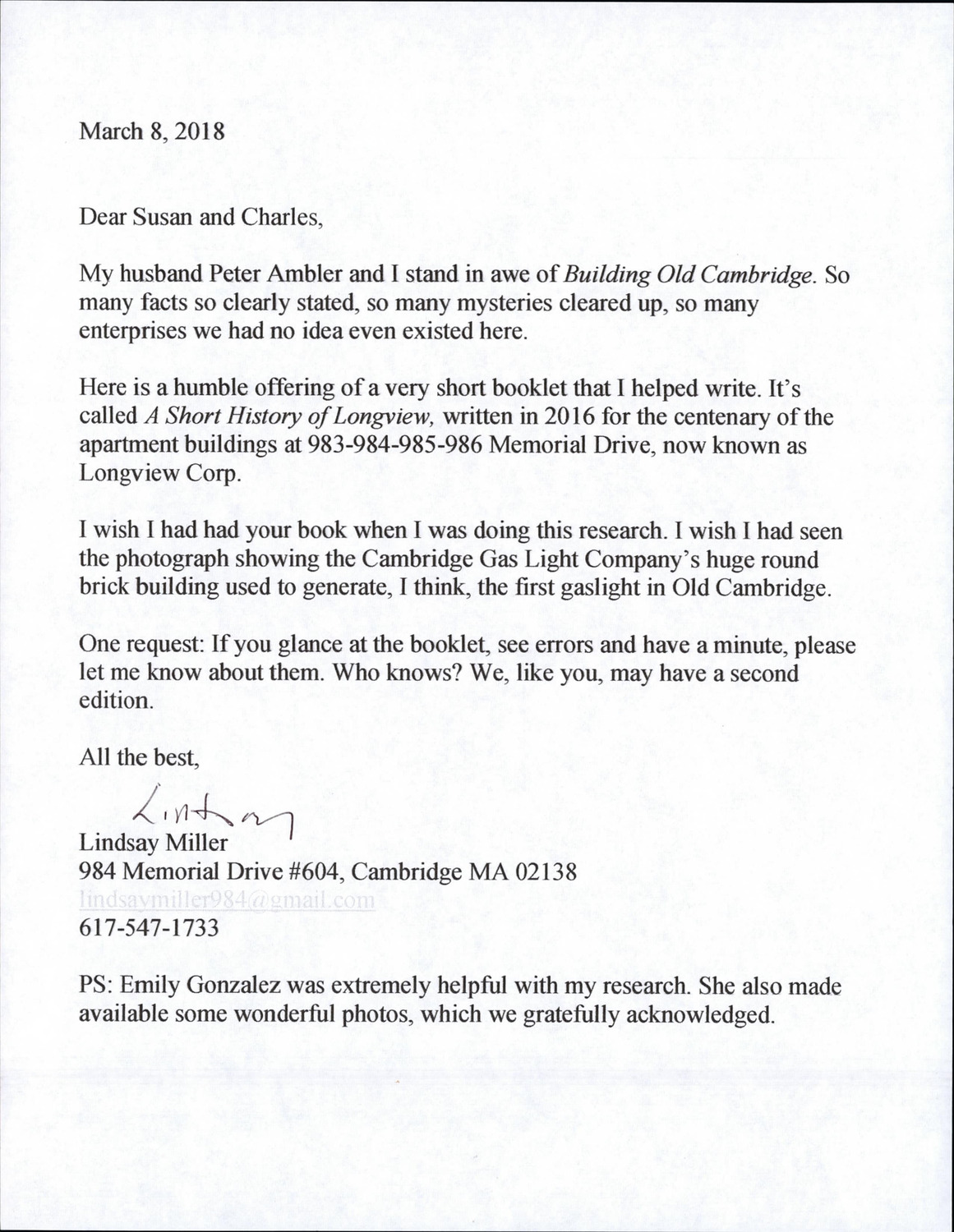 985-986 Memorial Dr - Correspondence