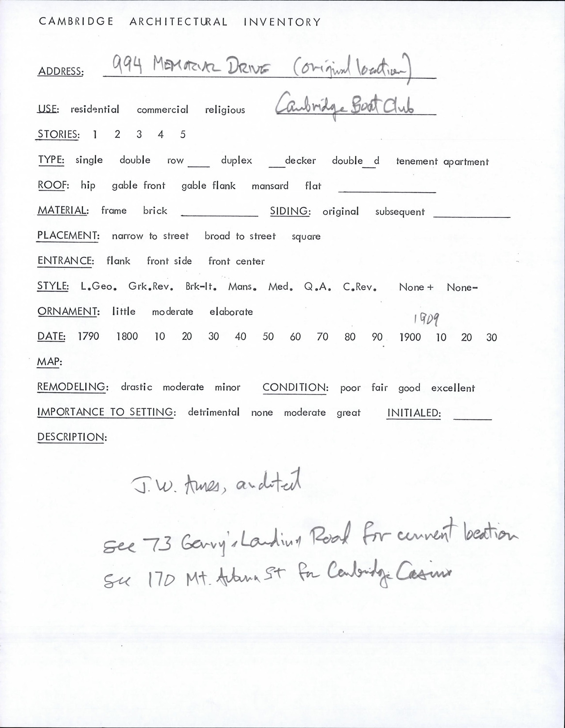 - Cambridge Historical Commission, Digital Architectural Survey and History.