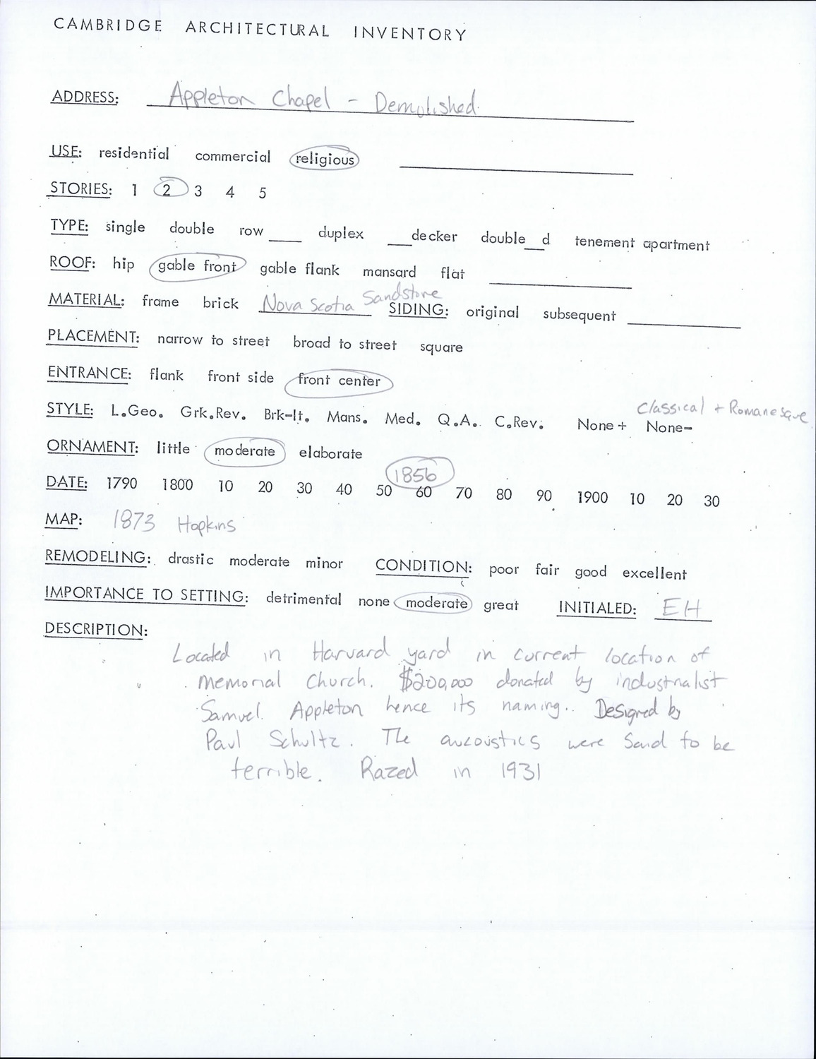 1800 Cambridge St - Appleton Chapel - Architectural Inventory Form