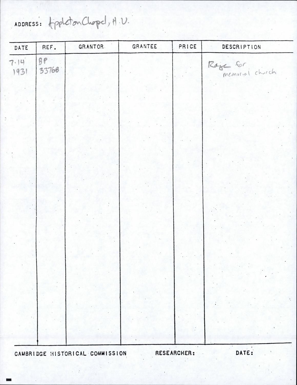 1800 Cambridge St - Appleton Chapel - Research Form