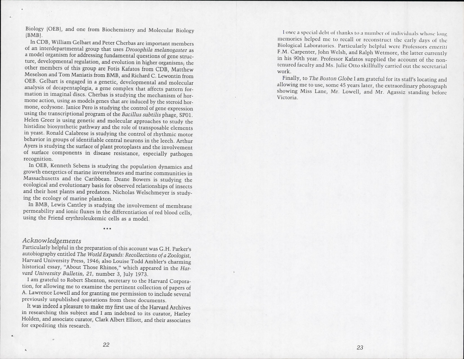 16 Divinity Ave - Biological Laboritories - Published Material