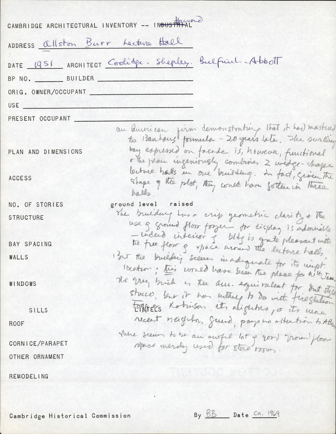 483 Broadway - Allston Burr Lecture Hall - Architectural Inventory Form