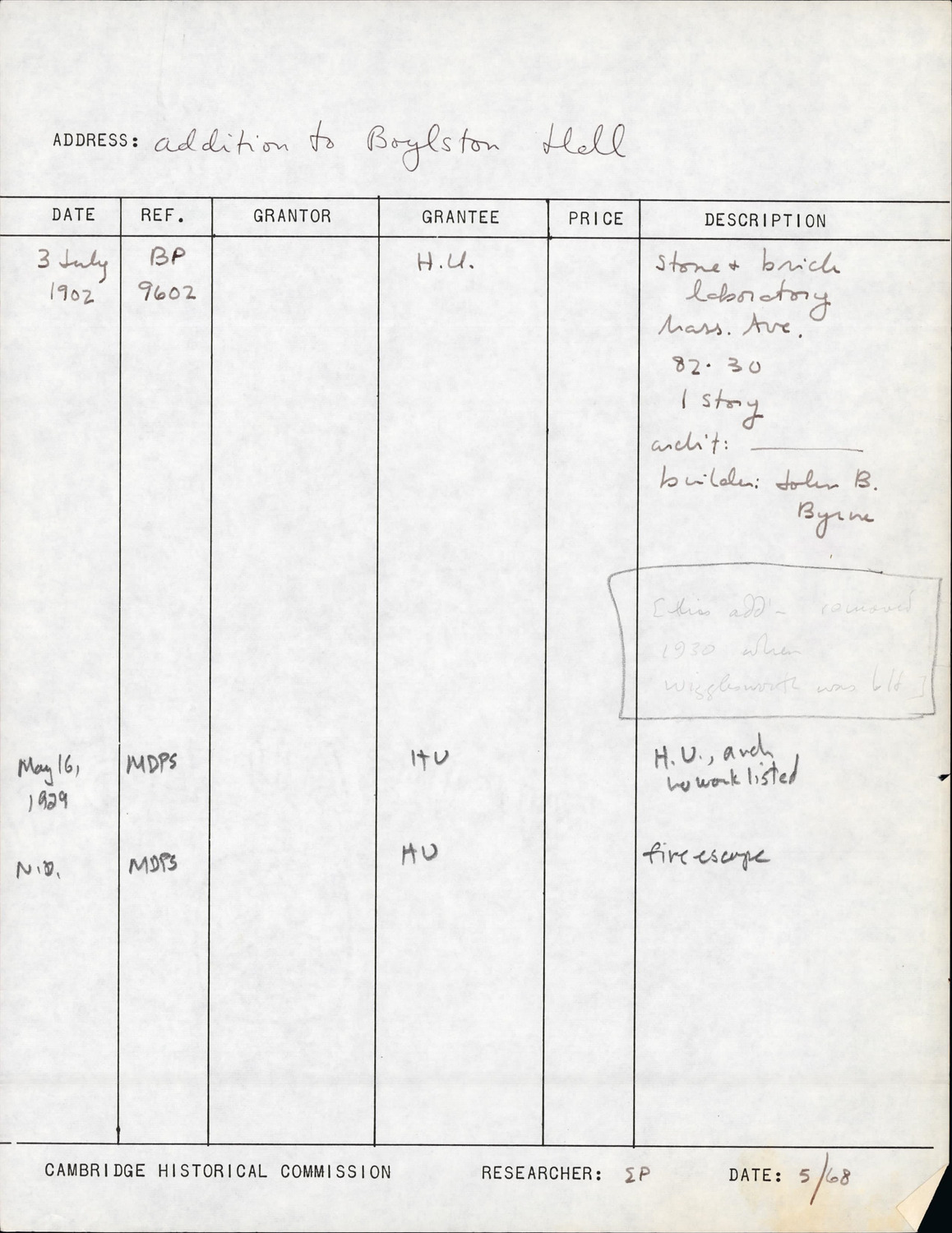 - Cambridge Historical Commission, Digital Architectural Survey and History.