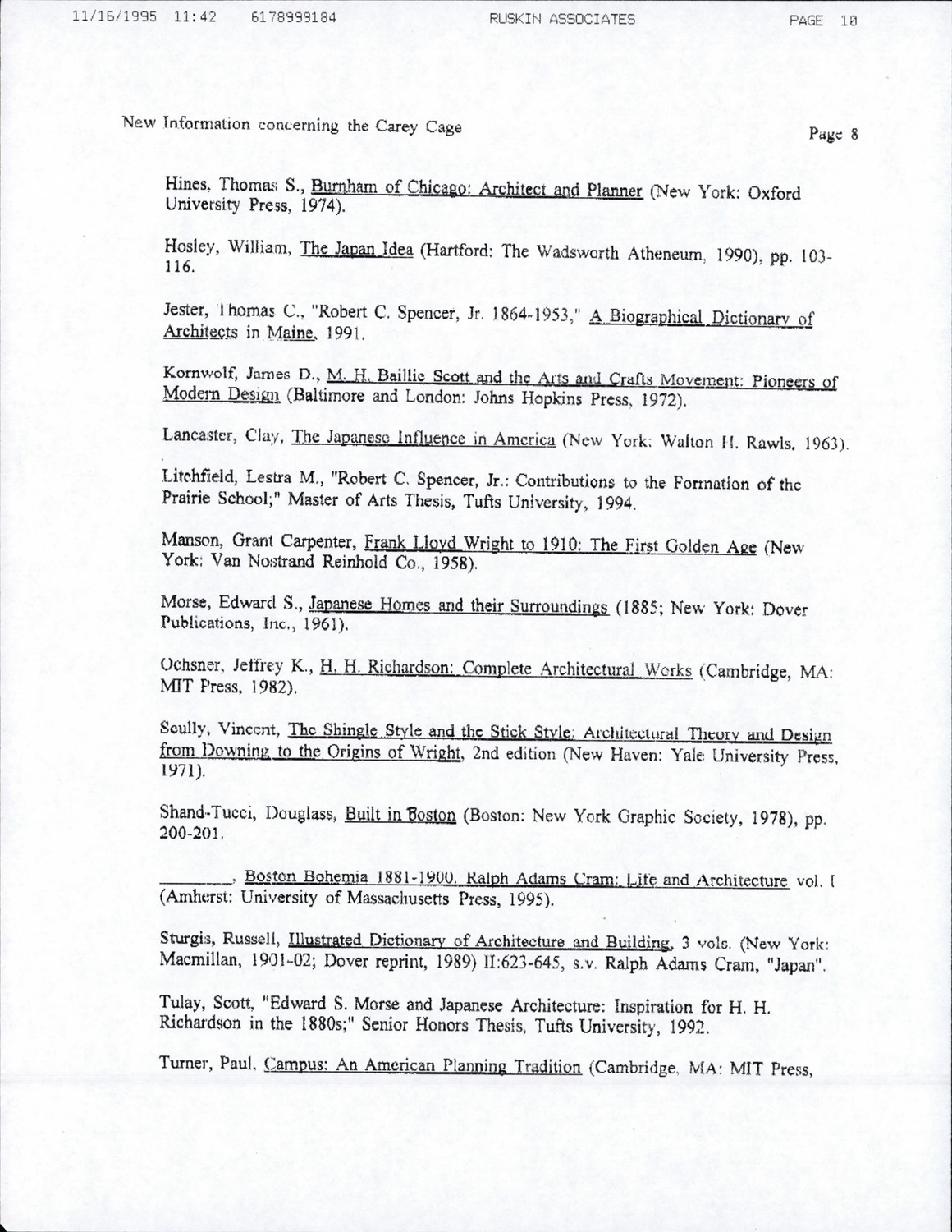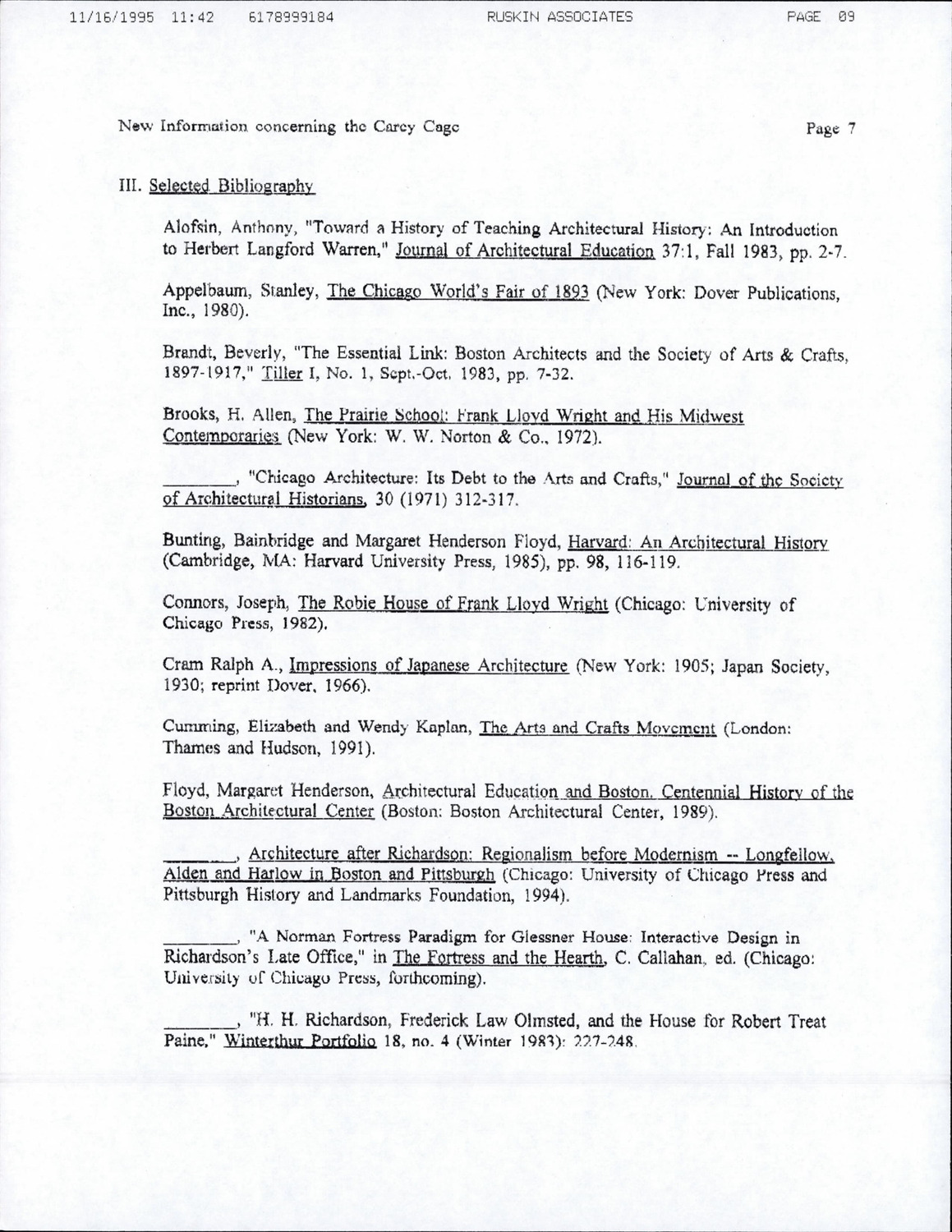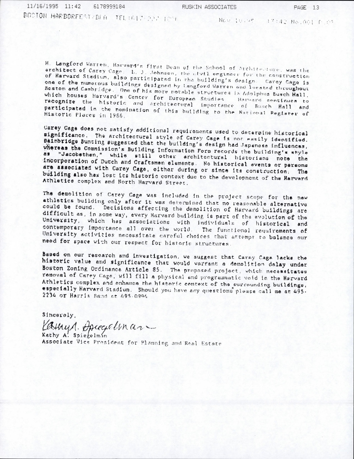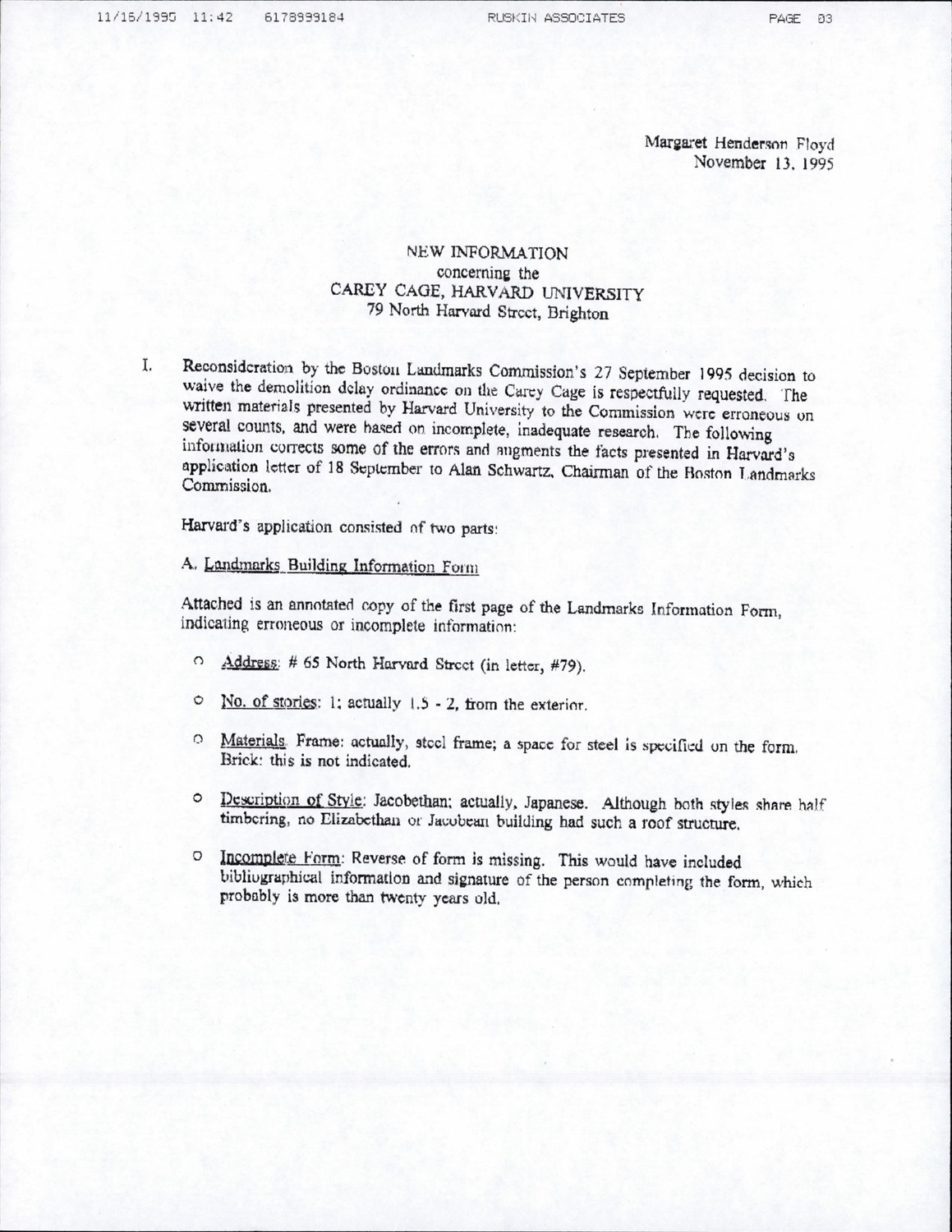 65 North Harvard St - Carey Cage - Correspondence