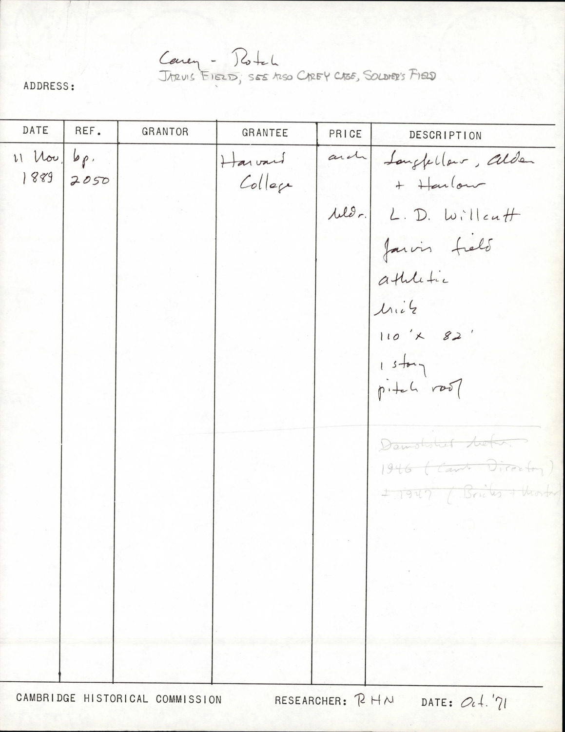 7 Jarvis St - Carey Athletic Bldg - Research Form